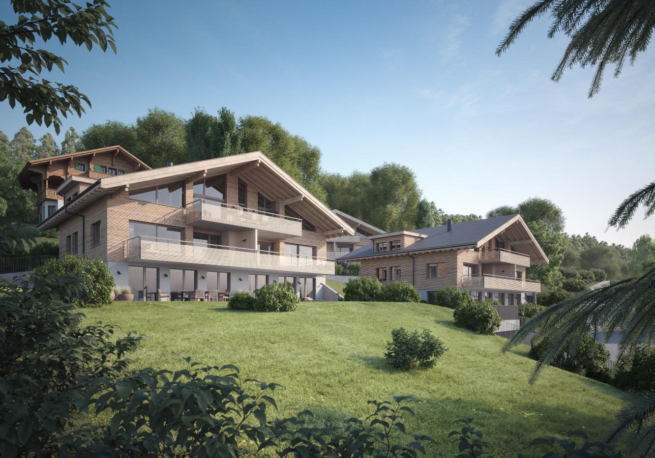 An einem alten Rebhang mit bestens besonnter Lage entstehen vier Mehrfamilienhäuser mit je vier Eigentumswohnungen zu 3½ und 5½ Zimmern. Volumen und Anordnung der Neubauten entsprechen dem Baustil des umliegenden Wohnquartiers und der benachbarten ‚Villa Paradiso‘. Die Setzung der Gebäude ermöglicht allen Wohnungen einen unverbaubaren Ausblick auf das Berner Alpenpanorama und den Thunersee. Die Häuser werden über eine neue Strasse erschlossen und verfügen über eigene Autoeinstellhallen. Satteldach, verputzte Sockel und holzgekleidete Obergeschosse folgen einer modernen Interpretation der traditionellen Berner Bauweise. Grosszügige Grundrisse und eine flexible Innenarchitektur schaffen hochwertige, individuell ausbaubare Eigentumswohnungen. Die massive Bauweise und moderne Haustechnik führen zu einer zeitgemässen, sowohl bautechnisch als auch energetisch nachhaltigen Wohnüberbauung, die sich ideal ins Ortsbild von Oberhofen einfügt. Weitere Informationen sowie Richtpreise entnehmen sie auf unserer Homepage oder rufen Sie uns an 031 960 46 49