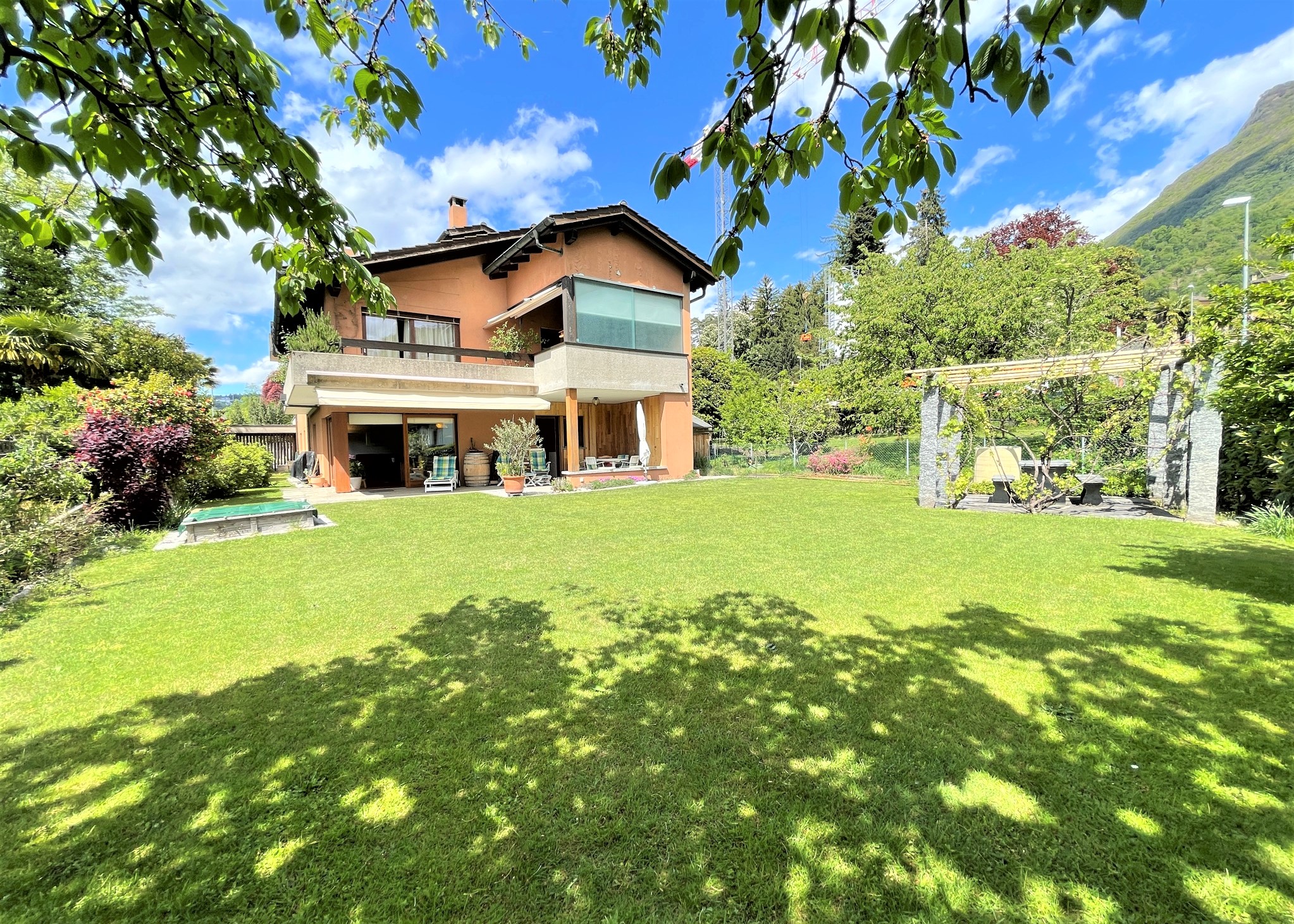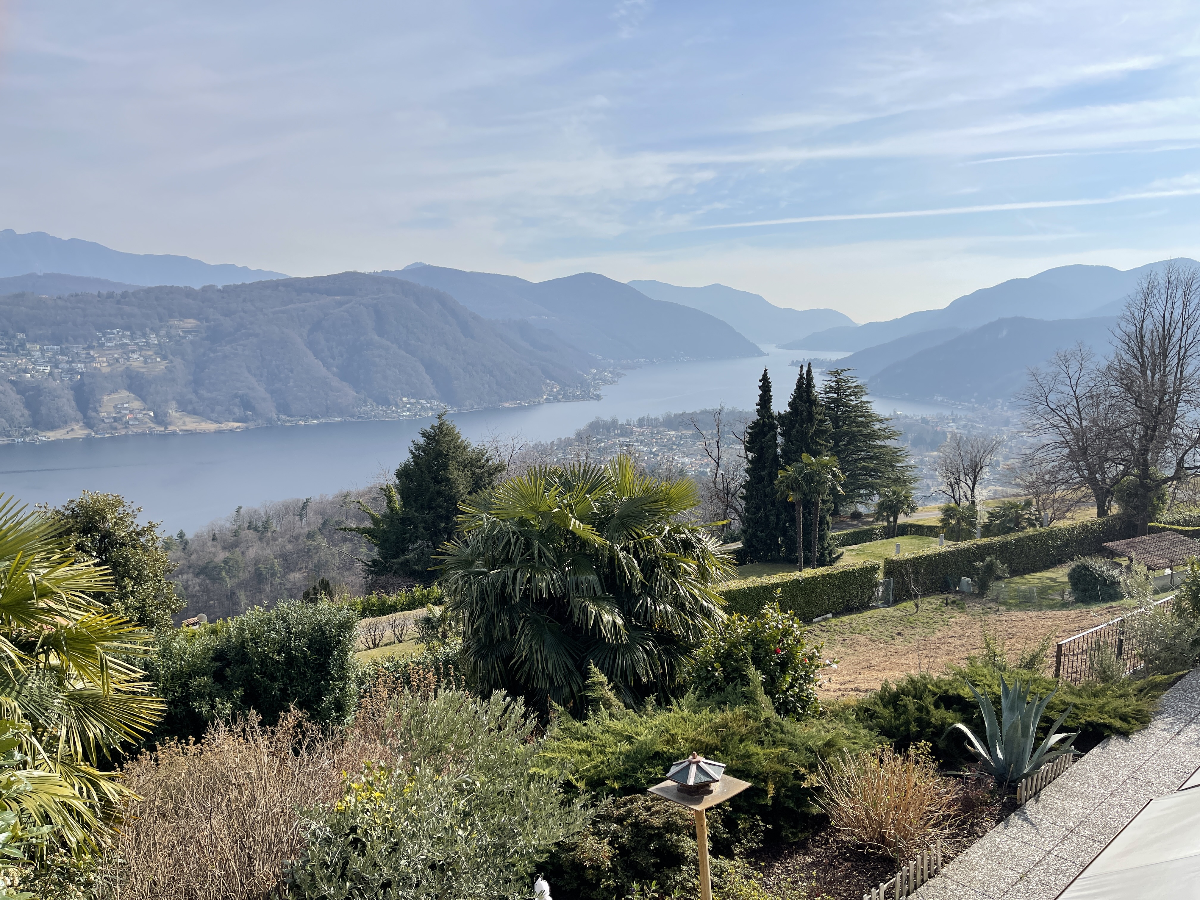 Rif. D2350 - Sup. 292 mq - 6,5 locali - 3 camere - 4 bagni - taverna A Novaggio in zona residenziale molto tranquilla e soleggiata, vendiamo CASA di 6,5 locali in stile tradizionale, posizione dominante con vista panoramica sul Golfo di Caslano e sulle montagne circostanti fino al Monte Rosa. La casa è stata ristrutturata nel 2017 e si presenta in ottimo stato, con belle finiture interne. La superficie lorda è di ca. 292 mq e quella netta abitabile ca. 175 mq così ripartita: P. Terreno: Portico d'entrata, generoso atrio d'ingresso, locale tecnico e lavanderia, cantina, ripostiglio, scale. Locale contiguo esterno con doppi vetri, con 2 Tank nafta da 2000 litri/cadauno (si tratta di un ex portico con camino eventualmente trasformabile in uno studio). P. Terreno rialzato: appartamento di 3,5 locali composto da atrio-corridoio, camera, doccia-wc con finestra, cucina separata, soggiorno, taverna-wintergarden con camino, riscaldato e con uscita sul giardino. 1° Piano: atrio, servizio ospiti con finestra, soggiorno-pranzo con camino, bella terrazza coperta panoramica e pavimentata in granito, dalla quale si accede anche al giardino tramite una comoda scala, cucina separata con uscita sull’altra terrazza coperta, con tenda da sole e sul giardino. 2° Piano: atrio-corridoio con armadi a muro, 1 camera doppia, doccia-wc con finestra, camera matrimoniale con bagno en suite con vasca, doccia, finestra e lucernario, zanzariere. Serramenti in alluminio con doppi vetri; bel parquet a listoni nella maggior parte dei locali; predisposizione clima nel soggiorno e nelle camere; riscaldamento a nafta con radiatori. Spese (riscaldamento, elettricità, acqua, ecc.): circa CHF 500.-/mese. Ampio giardino terrazzato con piante ornamentali, 2 box auto con portoni automatici, 2 posteggi davanti ai box e terrazza sopra i garages con casetta per gli attrezzi. La parcella di terreno è di 994 mq e vi sono ancora indici per un eventuale ampliamento. Deutsch/English: immobiliare.mpp.ch