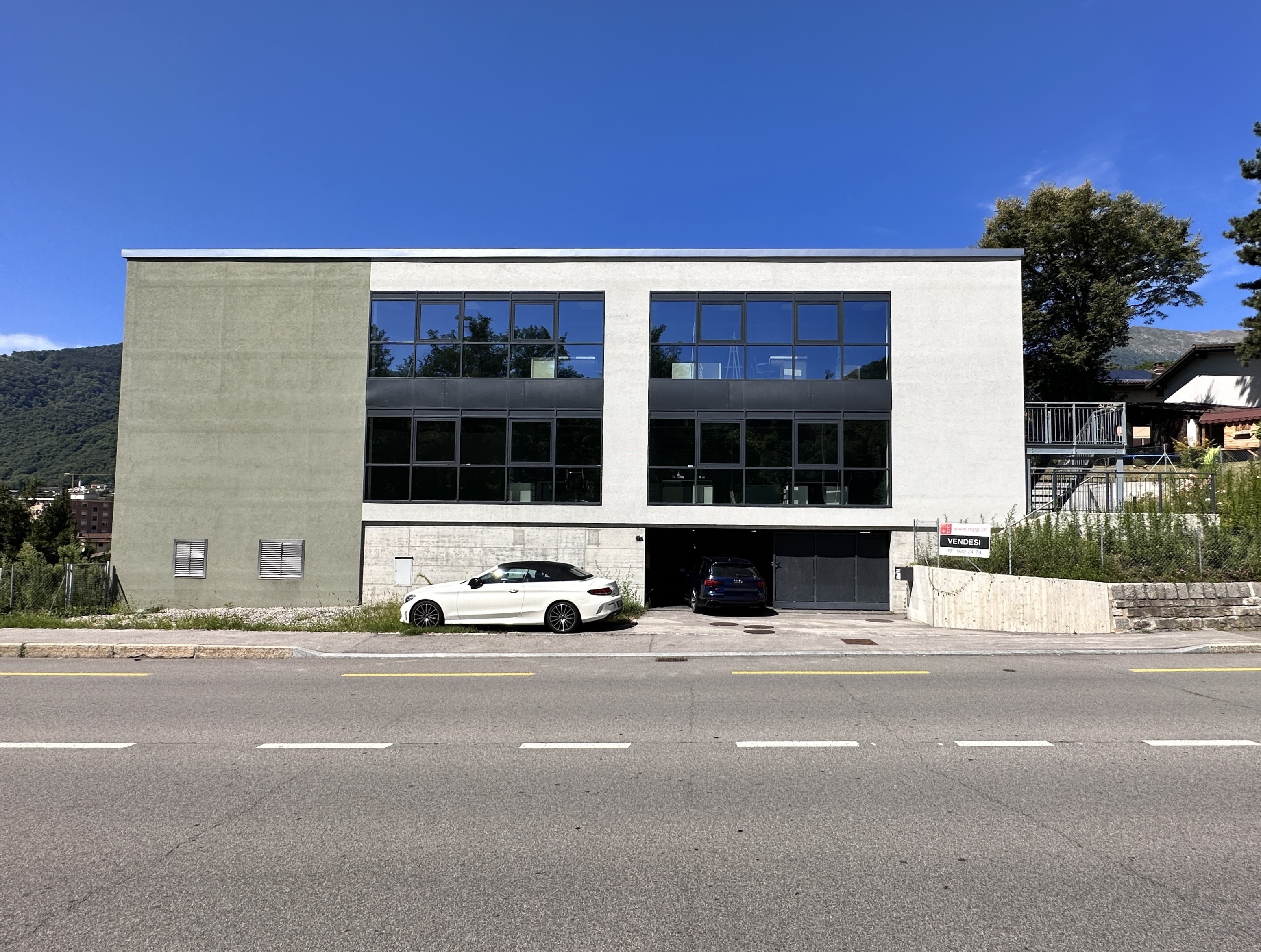 Rif. D2054: Sup. 370 mq + 300 mq autorimessa - 2 bagni - montacarichi - 2 piani + autorimessa A Taverne vendiamo (o affittiamo) NUOVISSIMO interessante STABILE COMMERCIALE-AMMINISTRATIVO, in posizione strategica, comoda e ben visibile, direttamente sulla strada cantonale, a 15 minuti da Lugano e da Bellinzona. Lo stabile si sviluppa su 2 piani commerciali fuori terra con ampie vetrate, di ca. 185 mq ognuno + il piano autorimessa seminterrato di ca 300 mq con 7 posti auto. Superficie totale di 670 mq. Gli spazi possono essere utilizzati per uno show room oppure sono divisibili come uffici. Vi sono inoltre 2 bagni ed un montacarichi. Il 40 % delle superficie può essere destinato a residenziale. Riscaldamento e climatizzazione con ventilconvettori e termopompa. 7 Posteggi in autorimessa + possibilità di affittare ulteriori 20 posteggi comunali nelle immediate vicinanze. Altezza locali: m 2,95. Affittato dal mese di febbraio 2024 con un contratto a lungo termine, quindi acquistabile sono per investimento a reddito, non per uso proprio. (Deutsch & English: immobiliare.mpp.ch)