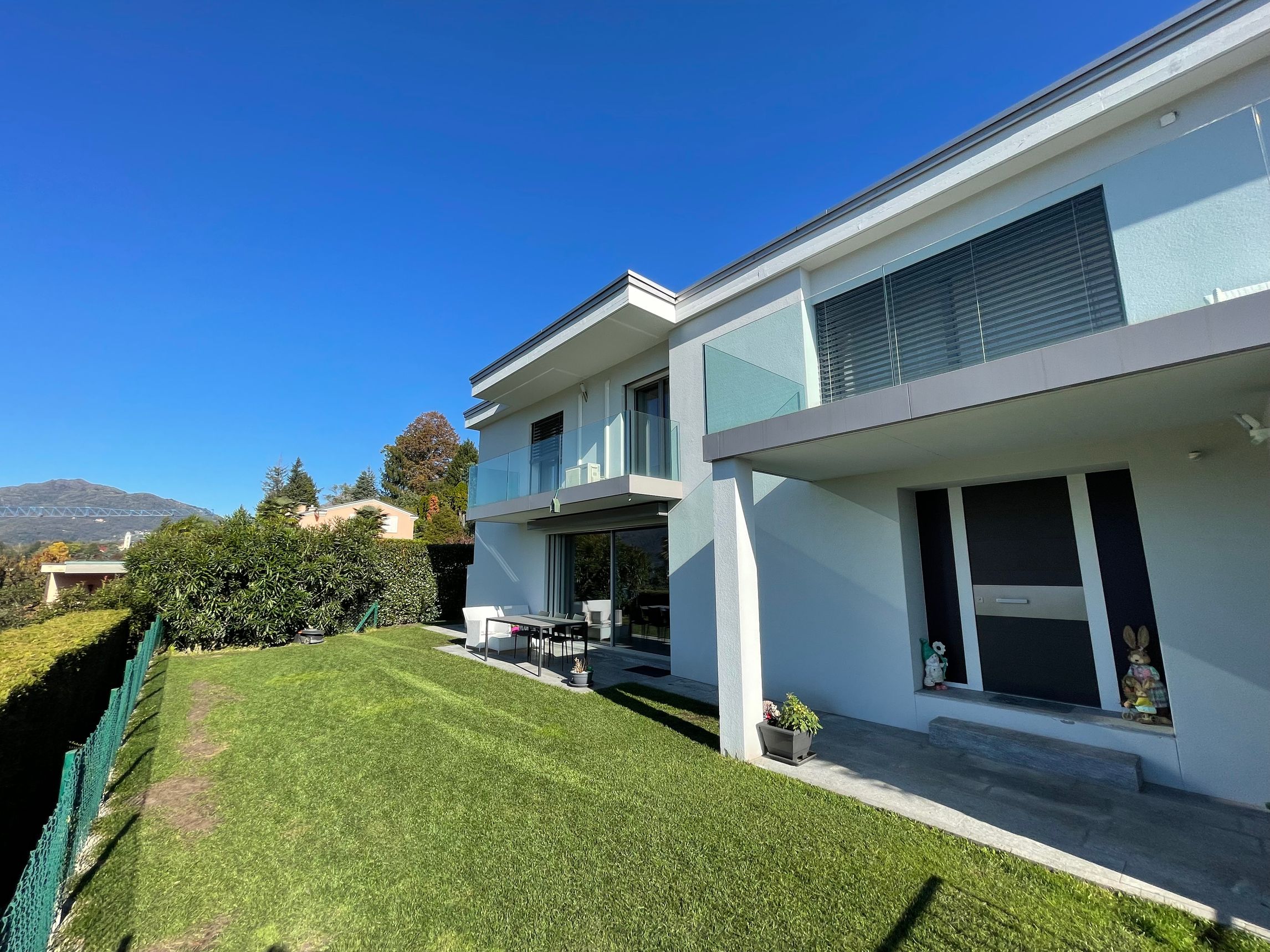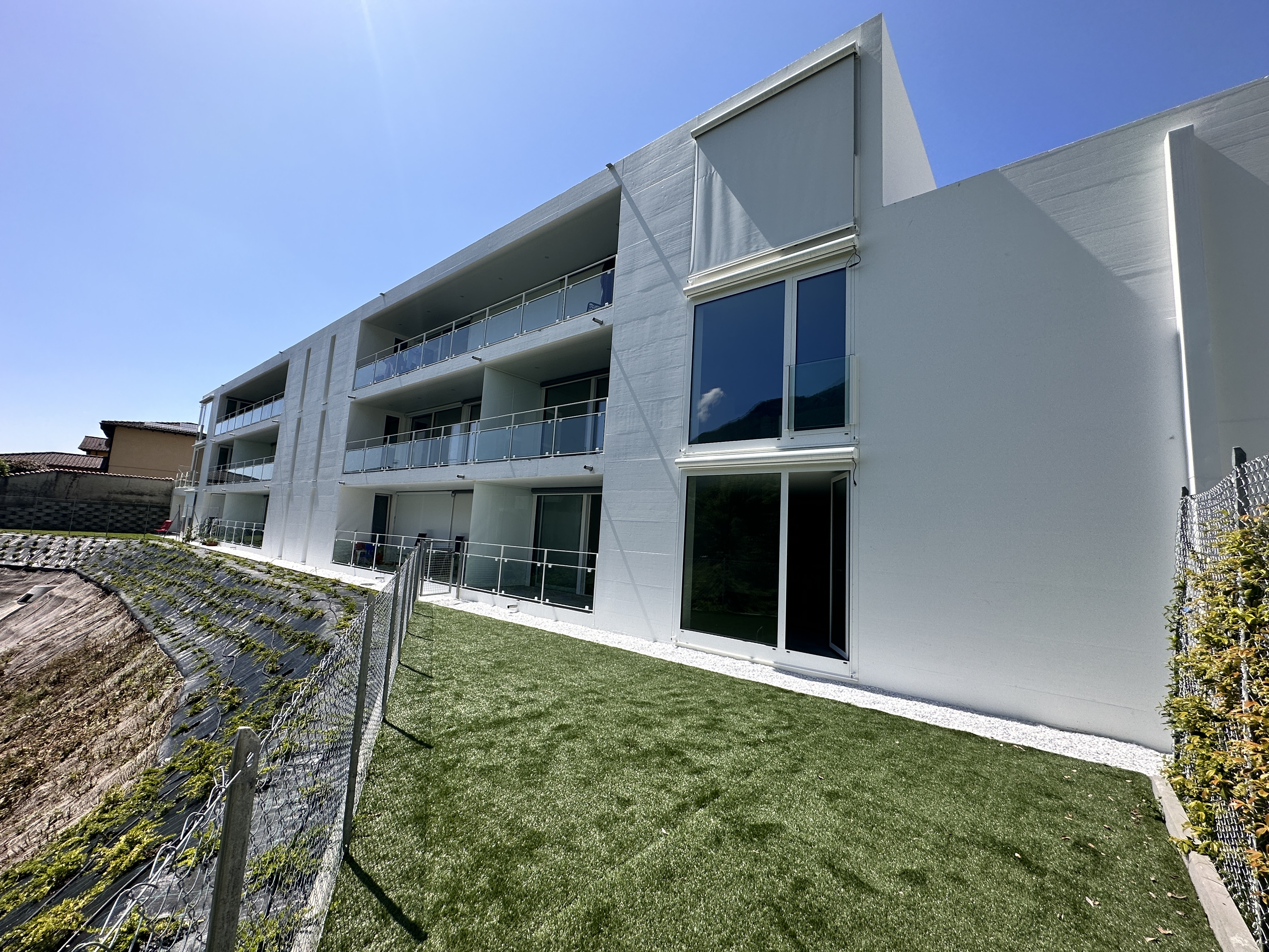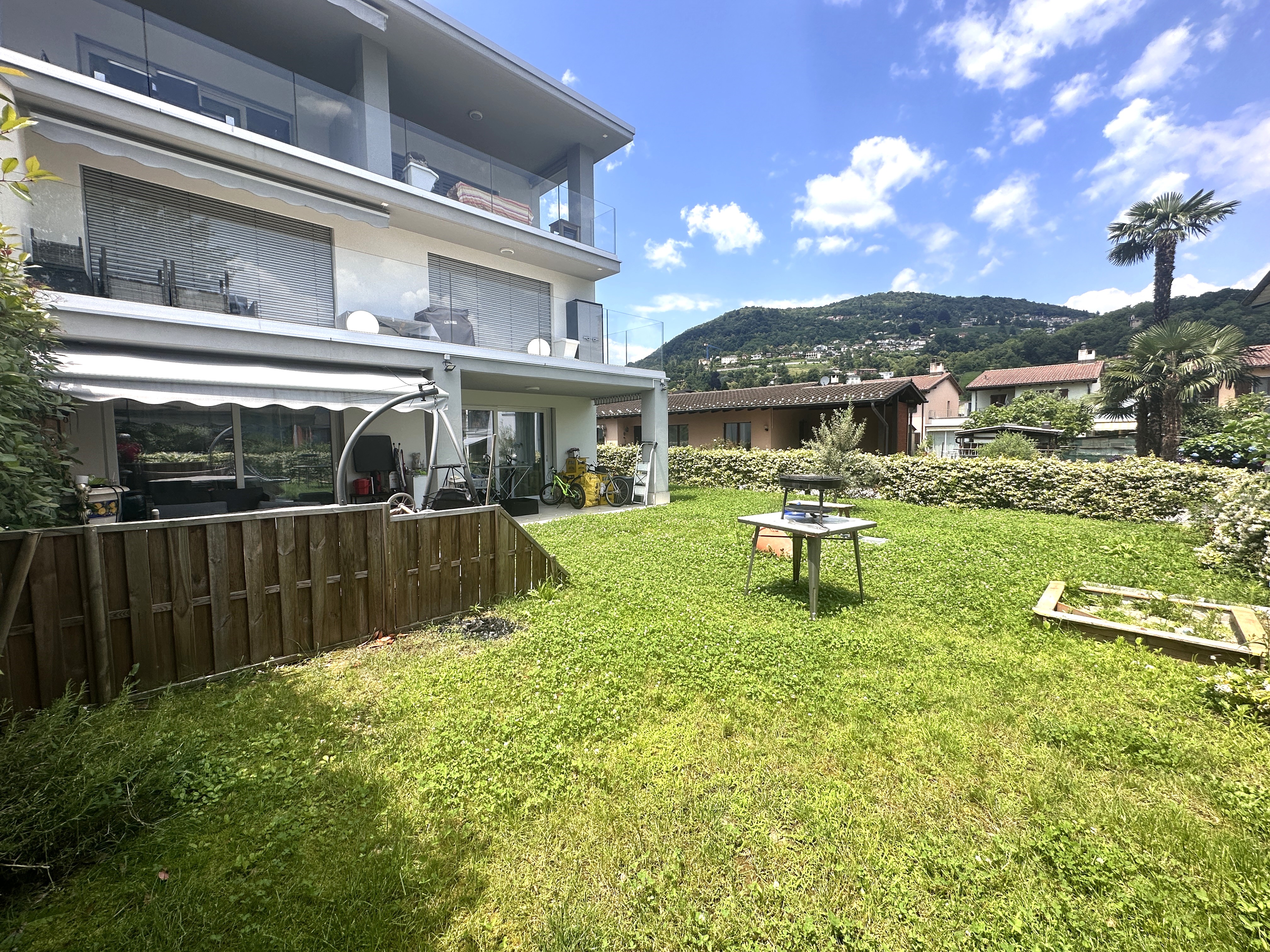 Rif. D2338-1 - sup. 105 mq - 3,5 locali - 2 camere - 2 bagni In una bella zona residenziale di Magliaso, vendiamo recente e moderno APPARTAMENTO di 3,5 locali con ampio giardino di ca. 300 mq. Acquistabile anche come RESIDENZA SECONDARIA. La zona è tranquilla e soleggiata, vicino ai principali servizi ed infrastrutture come pure la fermata del treno Lugano-Ponte Tresa. Il GOLF CLUB si trova a soli 800 metri come pure il LAGO. La palazzina è stata costruita nel 2019, è composta di sole 6 unità abitative e si sviluppa su 3 piani oltre al piano cantine ed autorimessa. L'appartamento ha una superficie utile lorda di ca. 93 mq + ca. 23 mq di portico e ca. 300 mq di giardino. Gli spazi sono così ripartiti: Entrata, servizio con doccia, wc e ventilazione, ampio soggiorno-pranzo con bella cucina semi-separata ad angolo ed uscita sul bel portico ed il giardino, camera matrimoniale con uscita sul giardino e camera ragazzi, bagno con vasca, wc e finestra. Le finiture sono di buona qualità, tapparelle e tende da sole elettriche, videocitofono, predisposizione climatizzazione, illuminazione giardino, riscaldamento con termopompa e serpentine a pavimento. Nel piano cantina si trova la lavanderia condominiale, una cantina privata (B1) e 2 posteggi (F) in autorimessa a Chf 40'000.- cadauno non inclusi nel prezzo. Ev. possibilità d'acquisto con sistema RENT-TO-BUY (tramite ditta specializzata) con un acconto del 5% ca. Deutsch/English: immobiliare.mpp.ch).
