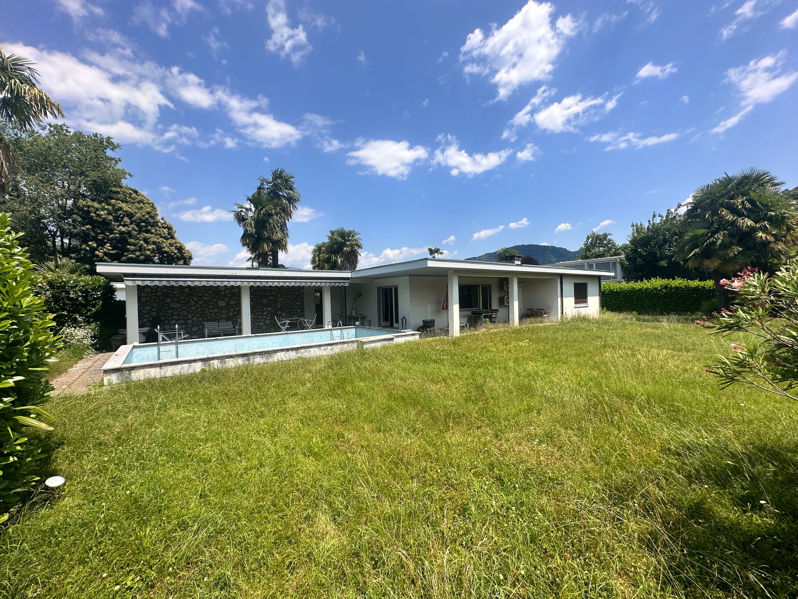 Rif. A2334 - Sup. 256 mq - 5,5 locali - 4 camere - 2 bagni A Caslano, in bella zona residenziale tranquilla e soleggiata a ca. 300 metri dal LAGO, vendiamo VILLA di 5,5 locali da rinnovare, su un solo piano abitativo oltre al piano seminterrato, con ampio giardino, piscina e garage. La proprietà dispone di piazzale d'accesso con posto per 2 auto e rampa d'accesso al garage doppio. Un vialetto conduce all'entrata principale della villa così composta: atrio d'ingresso-corridoio con armadi a muro, studio, ampio soggiorno-pranzo di oltre 45 mq con camino ed uscita sul grande porticato e giardino con piscina, cucina abitabile separata anch'essa con uscita sul porticato e giardino. Zona notte composta da corridoio, 2 camere matrimoniali, 1 camera, bagno con doccia-finestra, bagno con vasca-bidet e finestra. Al piano seminterrato si trovano: rifugio-cantina, locale tecnico (riscaldamento a nafta del 2018), locale tank, un'ampia taverna con camino, bancone bar e lavandino, accesso diretto al grande garage con posto per 2 auto ed al locale lavanderia dove c'è anche la pompa della piscina. Un bel giardino piano recintato, con siepe, piante, fiori ornamentali e piscina completano la proprietà. La villa ha una superficie di ca. 173 mq lordi per ogni piano+ ca. 70 mq di porticato. La superficie commerciale è di ca. 256 mq, formata da ca. 173 mq lordi + 48 mq di taverna e 70 mq di portici (calcolati al 50 %) La parcella di terreno è di 1'378 mq, zona R2. I parametri edificatori permettono ancora un'ampliamento della villa. (Deutsch/english: immobiliare.mpp.ch)