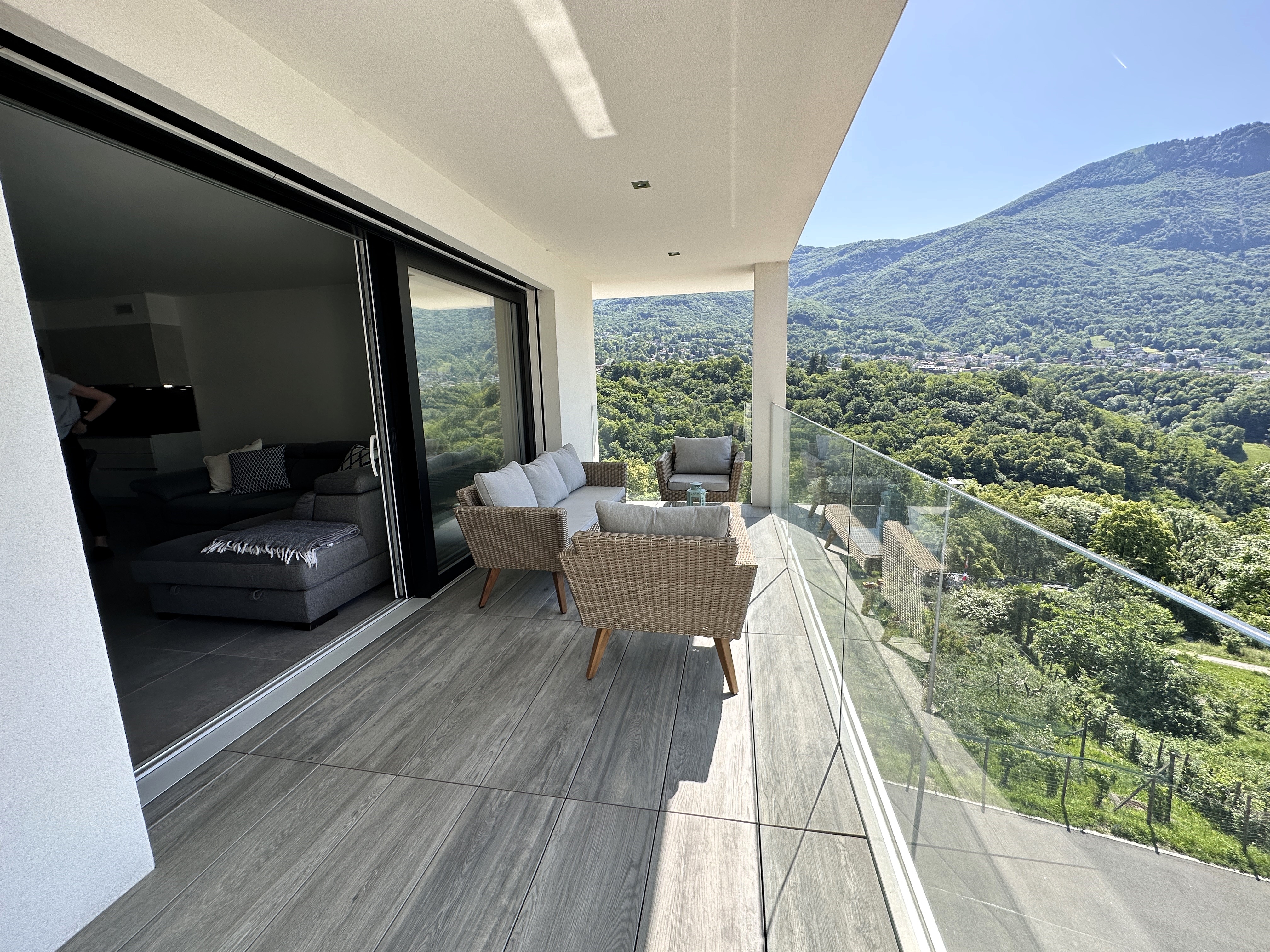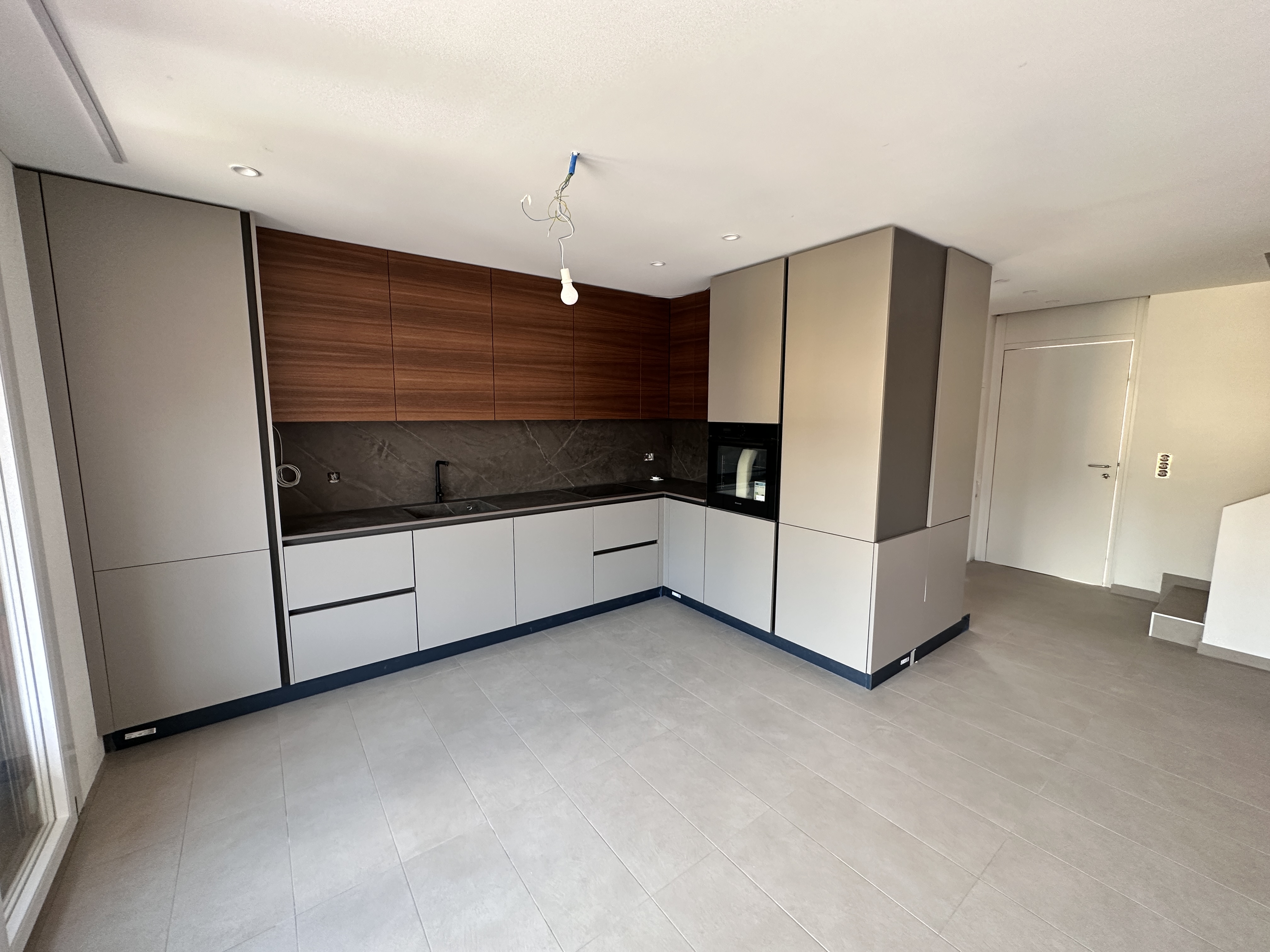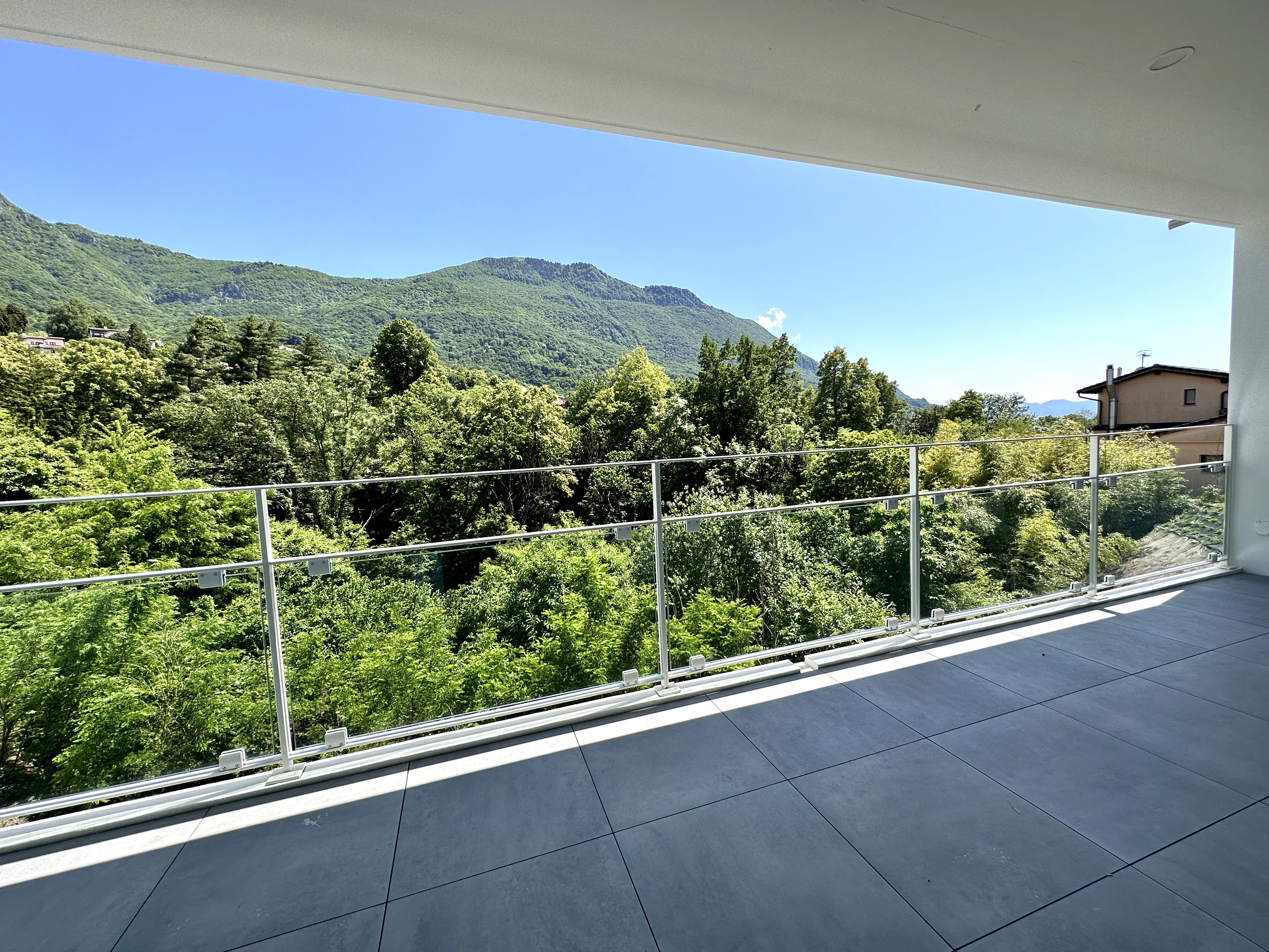 Rif. D2303-2 - Sup.80 mq - 2 locali - 1 bagno Nel comune di Bellinzona, località di Pianezzo, in zona collinare molto tranquilla e verdeggiante, lontana dal traffico cittadino ma comoda per raggiungere tutti i servizi in pochi minuti, proponiamo in vendita NUOVO moderno Appartamento di 2.5 locali con ingresso indipendente. La superficie abitabile commerciale é di ca. 80 mq, di cui: Atrio d'ingresso-scale ca. 10 mq + Appartamento ca. 55 mq abitabili + 2 terrazze di ca. 15 mq ognuna (tot. ca. 30 mq), con vista aperta sul verde. L'abitazione è così composta: Piano superiore/ingresso: ampio atrio ideale come guardaroba collegato a spaziosa terrazza, scale che portano al piano inferiore; Piano inferiore: soggiorno con moderna cucina a vista angolare collegato ad ampia terrazza coperta, camera da letto, bagno con doccia e bidet, comodo locale ripostiglio-lavanderia privato con predisposizione per lavatrice asciugatrice. Rifiniture moderne di prima qualità, riscaldamento a termopompa distribuito tramite serpentine a pavimento con termostato in ogni locale, tapparelle elettriche, videocitofono. L'appartamento dispone di 1 comodo posto auto esterno privato davanti l'ingresso. Moderna palazzina di sole 5 unità.(Deutsch & English: immobiliare.mpp.ch).
