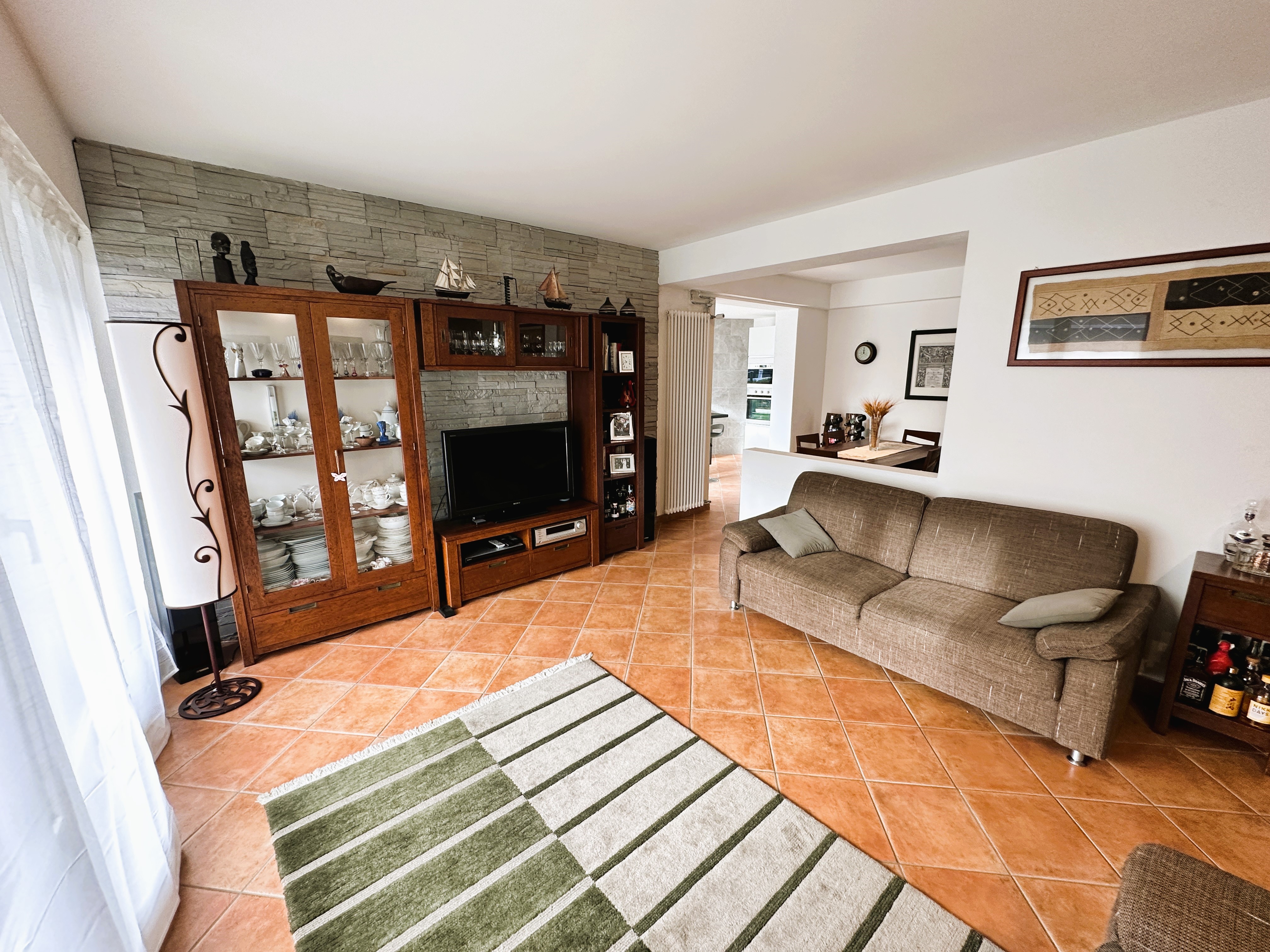 Rif. D2120 - Sup. 220 mq - 5,5 locali - 4 camere - 2 bagni Vendiamo, in bella, comoda e ben servita zona semi-collinare a Pregassona (Lugano), uno spazioso APPARTAMENTO di 5,5 locali con bel GIARDINO piano, situato in una casa plurifamiliare di cui questa abitazione è proprietaria al 50% (500 millesimi). La proprietà è ubicata in una zona residenziale molto tranquilla e soleggiata, a pochi minuti da: fermata bus, supermercati, negozi, ristoranti, posta, scuole ed altri servizi ed infrastrutture. L'appartamento, del 1978 ed acquistabile sia come RESIDENZA PRIMARIA che SECONDARIA, è in buono stato e con un investimento moderato si può portare agli standard attuali. La sua superficie commerciale lorda è di ca. 220 mq (inclusi 50% terrazza e 10 % giardino) di cui: ca. 160 mq SUL appartamento + ca. 26 mq terrazza e ca. 470 mq giardino. ZONA GIORNO: Atrio ingresso con locale guardaroba, doccia-wc, armadi a muro, salotto con camino e zona pranzo, cucina separata (nuova 2018) con penisola affacciata sulla zona pranzo; dal soggiorno e dalla cucina si accede alla terrazza coperta ed al giardino. ZONA NOTTE: corridoio, studio-camera, 2 camere, camera matrimoniale con balconcino, bagno con vasca-doccia-bidè-doppio lavabo-finestra e accesso anche dalla camera matrimoniale. Accesso diretto ad atrio e garage con 3 posti auto di cui 2 per questo appartamento. PIANO CANTINA: locale riscaldamento (gas-serpentine e caldaia nuova del 2015), locale elettrico, ripostiglio/sottoscala e, assegnati all'appartamento: lavanderia, locale hobby e cantina. Ampio giardino privato piano e recintato con piante ornamentali, bel pergolato con tavolo e panche in granito, piccolo orto e casetta attrezzi. Possibile acquisto con formula Rent to Buy tramite società specializzata con acconto del 5 % ca. (Deutsch & English: immobiliare.mpp.ch)