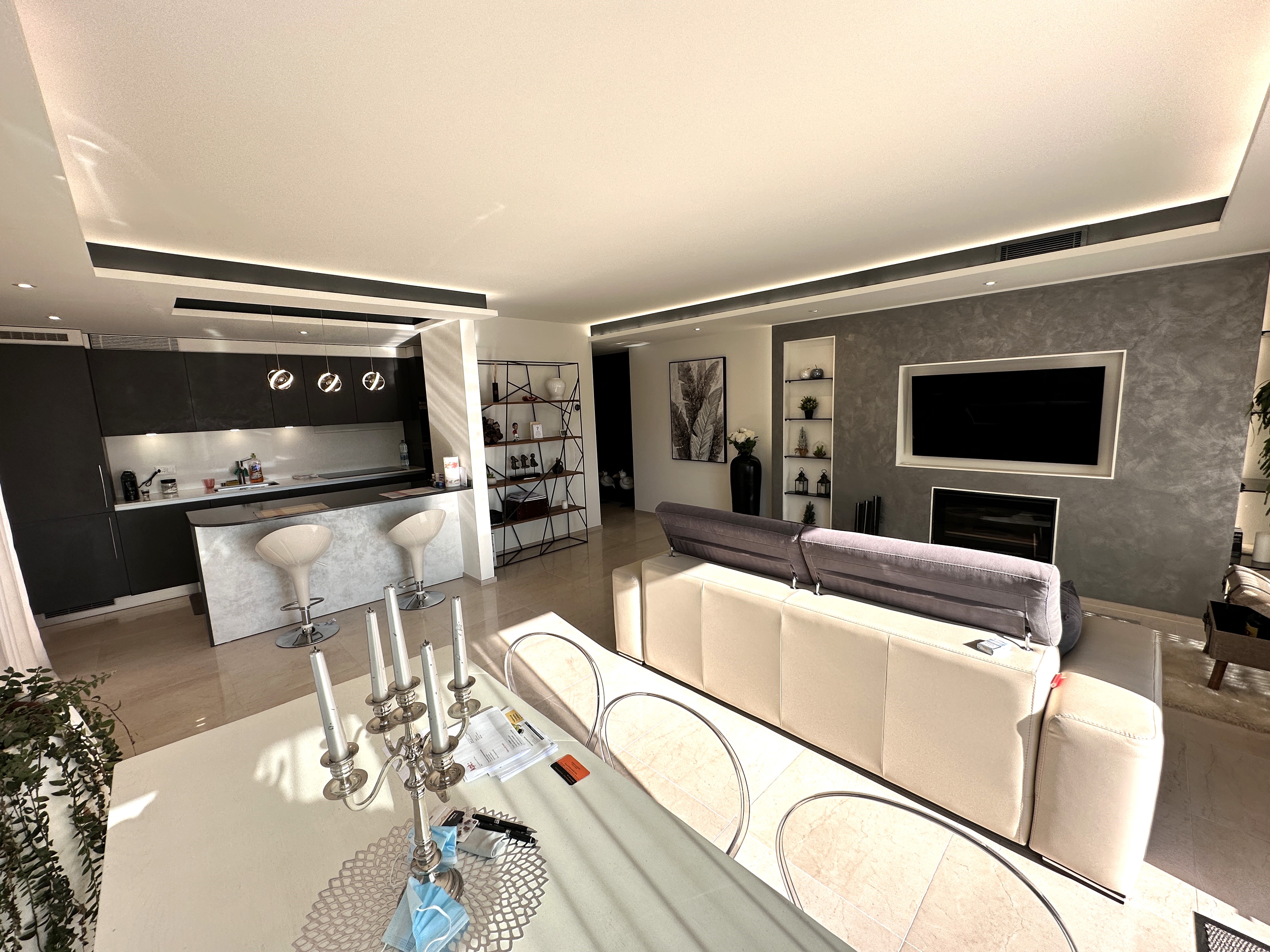 Rif. D2311-A15 - Sup. 130 mq - 4,5 locali - 3 camere - 2 bagni - roof-top 48 mq Ad Agno vendiamo interessante ATTICO elegantemente RISTRUTTURATO (2020-2021) con roof-top, di 4,5 locali e mq 147 commericali (Appartamento mq 118 SUL, Balcone mq 10 e roof-top mq 48 calcolati al 50 %), in posizione centrale, soleggiata, con vista panoramica e parziale lago, a 5 minuti d'auto dall'entrata di Lugano. Acquistabile anche come RESIDENZA SECONDARIA ! Palazzina di 6 piani edificata negli anni '80, ma rinnovata (facciate, tetto), ubicata in una zona molto comoda e ben servita da tutte le principali infrastrutture e mezzi pubblici (diversi supermercati, posta, municipio, treno Lugano-Ponte Tresa, aeroporto, World Trade Center, lido comunale al lago, piste ciclabili, ecc.) che garantiscono un'ottima qualità di vita. L'abitazione è così composta: Atrio d'entrata-corridoio con lift diretto in casa; bagno con doccia-wc e lucernario; camera ragazzi con balconcino, soggiorno-pranzo con camino e comodo balcone panoramico con tenda da sole; cucina americana, disimpegno, camera matrimoniale con bagno padronale con doppio lavabo, termo-arredo, doccia-wc-bidet e finestra, locale guardaroba con lavatrice (o camera/studio). Soffitto del soggiorno con illuminazione scenografica tramite spot e led, tapparelle elettriche, impianto di climatizzazione. Completano la proprietà un roof-top raggiungibile con lift, 1 cantina privata, 2 posteggi coperti per il lungo a Chf 70'000.- non inclusi nel prezzo. Lavanderia condominiale. Giardino condominiale con piccolo parco giochi. Spese Condominiali: ca. CHF 400.-/mese. (Deutsch & English: immobiliare.mpp.ch).