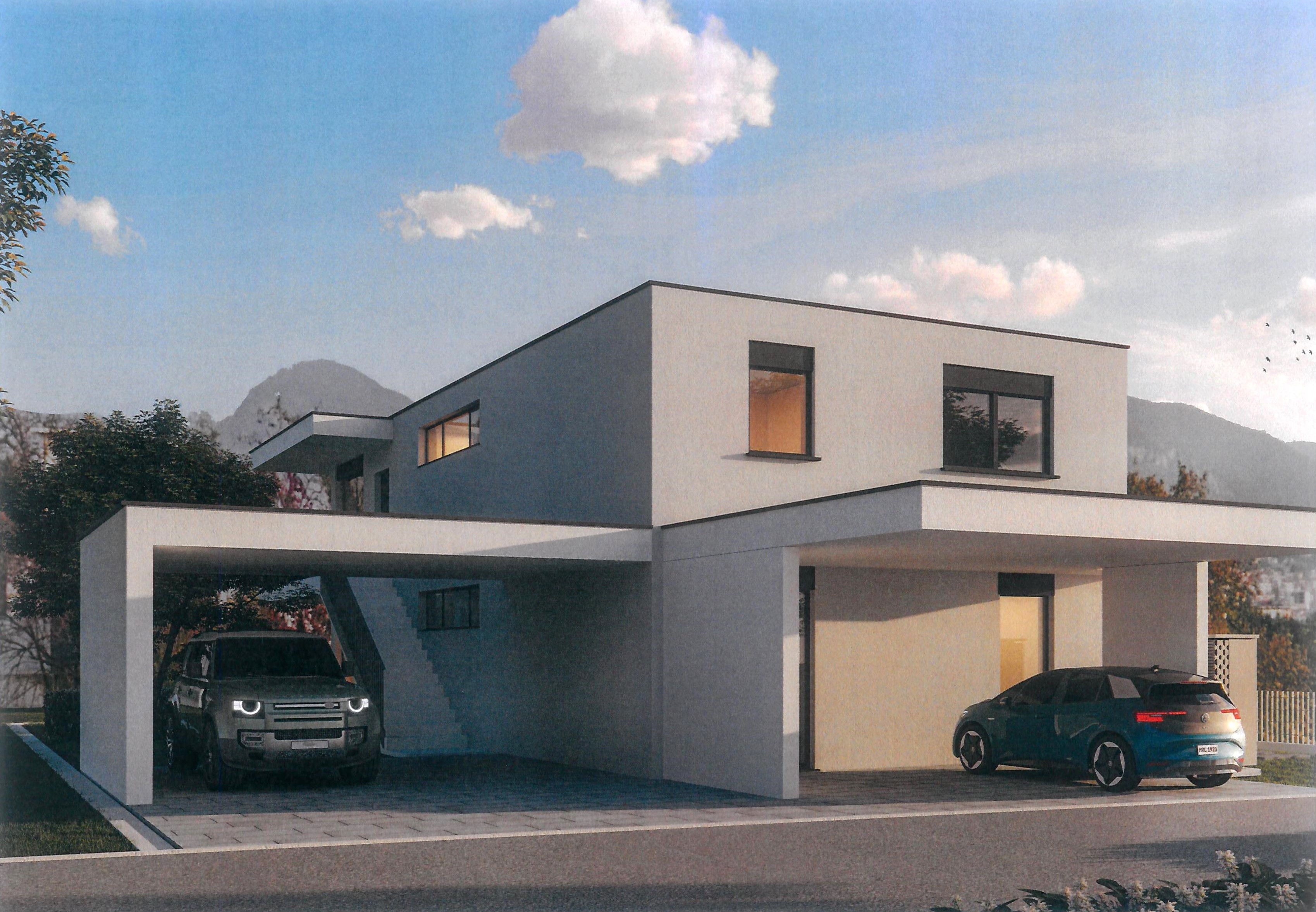 Rif. D2370 - Sup. 307 mq - 2 x 4,5 locali - 6 camere - 4 bagni A Rancate, comune di Mendrisio, vendiamo Nuova VILLA BIFAMILIARE da costruire "chiavi in mano" con 2 appartamenti di 4,5 locali, anche come RESIDENZA SECONDARIA. La zona è residenziale, tranquilla e soleggiata. La superficie utile lorda abitabile di ogni appartamento è di ca. 121 mq + terrazza e giardino. Ogni appartamento ha la sua propria entrata indipendente ed è composto da atrio ingresso con guardaroba, soggiorno-pranzo con cucina americana e terrazza, doppi servizi, camera padronale e 2 camere ragazzi. Sia l'appartamento al pianterreno che quello al 1° piano hanno un giardino ad uso esclusivo, rispettivamente di ca. 182 mq (PT) e ca. 34 mq (1°P). Al piano seminterrato, con entrate indipendenti, si trovano cantina e lavanderia per ogni appartamento ed il locale tecnico. Due posteggi coperti per ogni abitazione completano questa moderna proposta immobiliare. (Deutsch/english: immobiliare.mpp.ch)