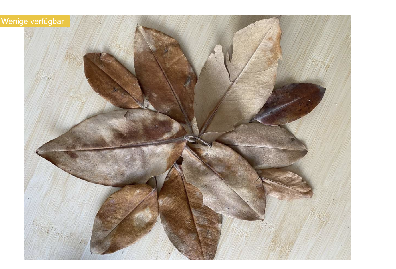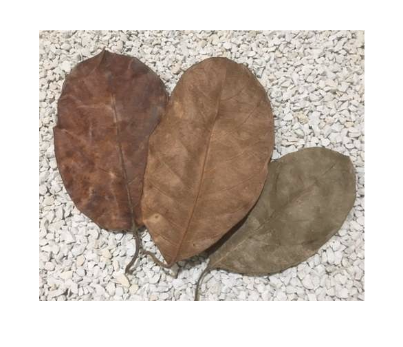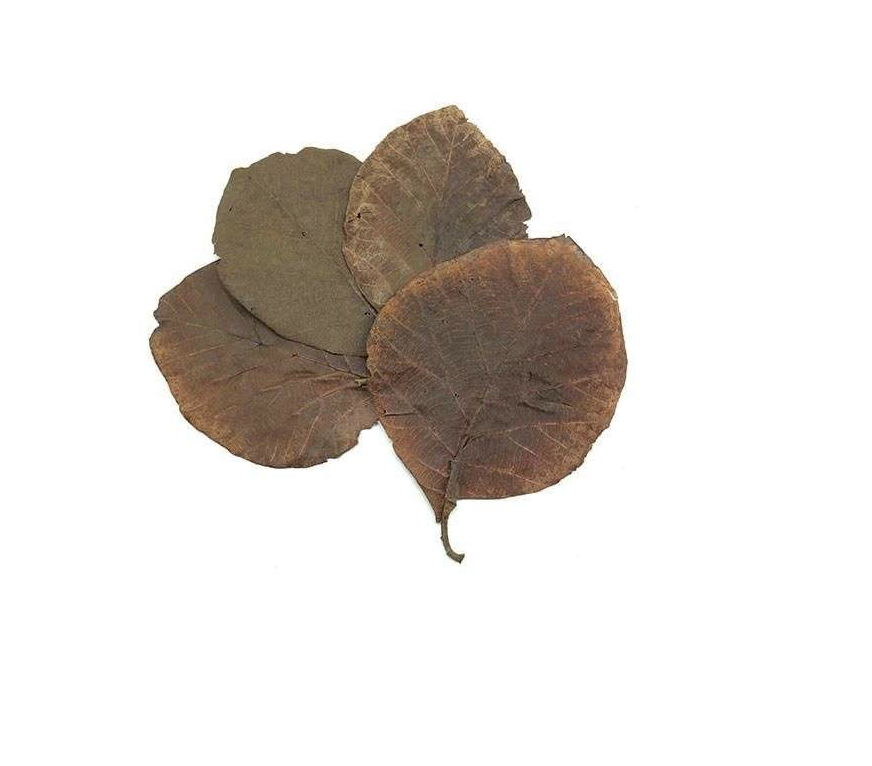 Produktinformationen "Seemandelbaumblätter" Getrocknete Seemandelbaumblätter werden in Fernost traditionell zur Aufbereitung von Aquarienwasser eingesetzt. Die wertvollen enthaltenen Huminsäuren reduzieren den Keimdruck im Wasser erheblich. So wird Krankheiten vorgebeugt und der Einsatz teurer Medikamente reduziert. Je nach Grösse der Becken ein bis drei Blätter pro Monat in das Becken einbringen. Eine einsetzende gelbliche Verfärbung des Wassers ist ganz natürlich und unbedenklich. Sie ist auf die sich lösenden Huminstoffe zurückzuführen. Garnelen und Krebse schätzen die Blätter als willkommene Bereicherung ihres Speiseplans.