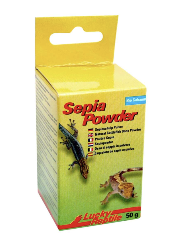 Produktinformationen "Lucky Reptile Bio Calcium Sepia Pulver, 50g" Bio Calcium Sepia Powder besteht aus fein gemahlenem Sepiaschulp und dient der Calciumversorgung von Reptilien. Bestäuben Sie Futterinsekten und Grünfutter mit Sepia Powder oder stellen Sie es separat in einem Napf den Tieren zu Verfügung. Der Vorteil von Sepiapulver gegenüber anderen Calciumpräparaten liegt darin, dass es aus einem tierischem Naturprodukt hergestellt wird. Das Calcium ist hochwertiger und biologisch besser verwendbar als reines Calciumkarbonat.