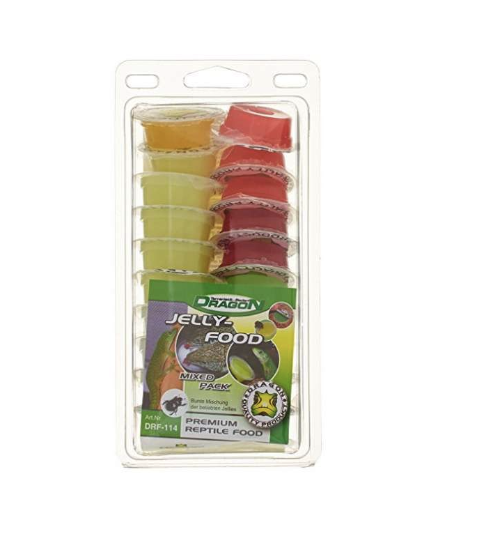 Produktinformationen "Jelly Food Mixed Pack 20Stk. (DRF-114)" DRAGON JELLY FOOD ist ein Vitamin-Fruchtgelee für alle Terrarientiere, exotische und heimische Kleinsäuger und Ziervögel, sowie für Käfer und Insekten. JELLY FOOD dient als Haupt- und Ergänzungsnahrung oder einfach als Leckerbissen zwischendurch. Enthalten ist natürliches Fruchtkonzentrat von Früchten und außerdem natürliche Vitamine, Mineralstoffe und Spurenelemente und in einem ausgewogenen Verhältnis lebenswichtige Vitaminzusätze und Ballaststoffe. Inhalt: Blister mit 20St. à 16g - Bunte Mischung der beliebten DRAGON Jellies! Zur sauberen und sicheren Plazierung im Terrarium gibt es die passenden Jelly Food-Felsschalen in 3 Farben: Jelly Food Rock Sand Stone NDS65 Granite Rock NDG65 Lava Rock NDL65