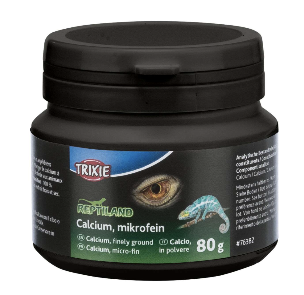 Produktinformationen "Trixie Calcium mikrofein 80g" Calciumcarbonat für pflanzenfressende (herbivore) und fleischfressende (carnivore) Reptilien sowie Amphibien ideal für die Bestäubung von Futterinsekten schnelle Absorption im Körper