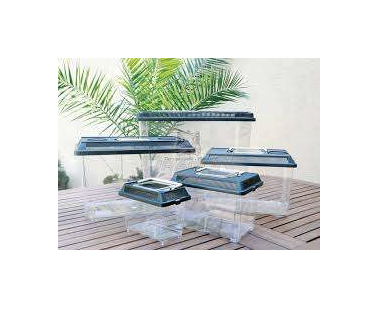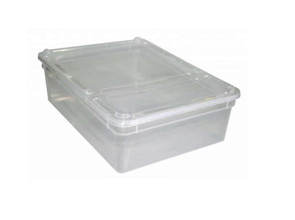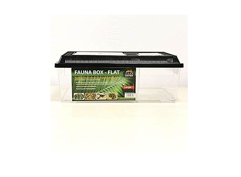 Produktinformationen "Terra Exotica Fauna Box Flat" DraFauna Box - Flat stapelbares Allzweck-Terrarium aus glasklarem Kunststoff abnehmbarer Deckel mit transparenter Futterluke Ideal geeignet als Transportbehälter, Quarantäne-Quartier, zur Aufzucht von Jungschlangen oder als Kurzzeitbehausung für Reptilien, Amphibien, Nagetiere und Wirbellose Einfach zu reinigen und desinfizieren Deckel mit großer Belüftungsfläche small: 37 x 22 x 15,2 cm large: 45 x 30 x 16,2 cm