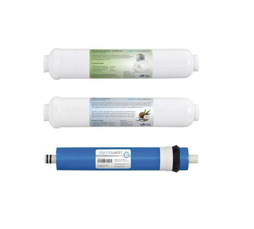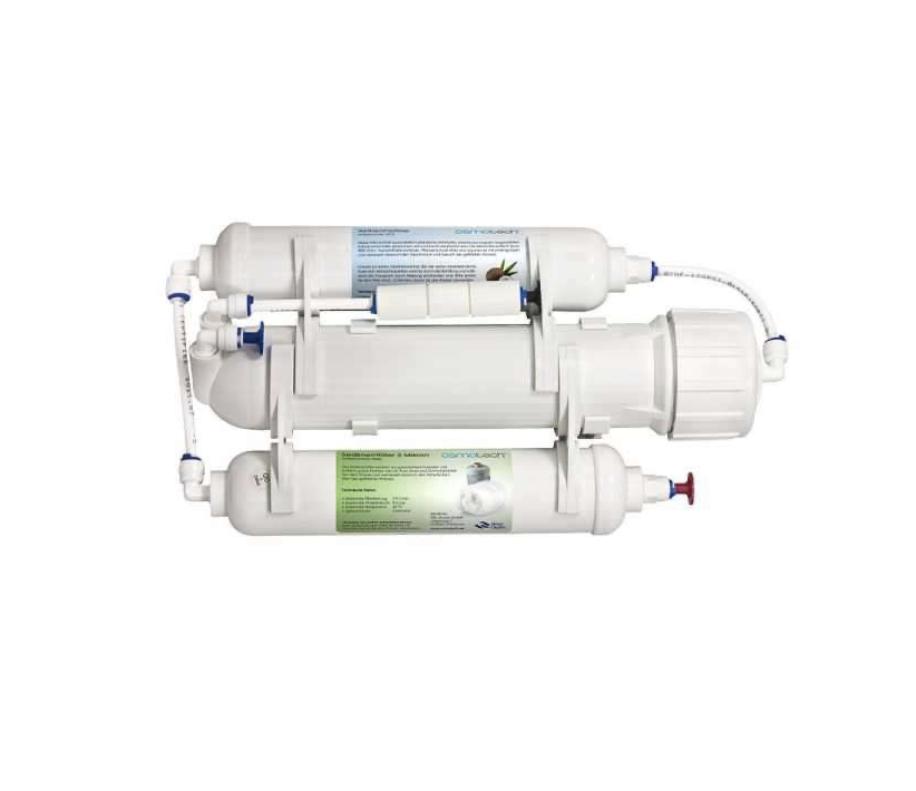 Produktinformationen "OSMOSEANLAGE HOBBY (100GPD)" Die Klassische Einsteiger Osmoseanlage für einen eher geringen Wasserverbrauch. Die maximale Tagesleistung der 100GPD Membrane beträgt bei optimalen Bedingungen 380 Liter. Meistens kann aber von etwas weniger ausgegangen werden. Durch die kompakte Bauart und die mitgelieferte Wandhalterung lässt sich diese Osmoseanlage gut verstauen. Das Anschliessen ist einfach und kann ohne Fachkenntnisse gemacht werden. Warum eine Osmoseanlage für die Aquaristik? Viele Zierfische die in der Aquaristik angeboten werden haben in Ihrer natürlichen Umgebung Weiches / leicht saures Wasser. Da wir hier in der Schweiz aber meist hartes Wasser aus dem Leitungsnetz beziehen, können wir keine Idealen Bedingungen für die Fische bieten. Daraus resultiert das sich die Aquarienbewohner nicht richtig wohl fühlen und somit auch nicht ihre eigentliche Lebenserwartung erreichen. Dieses Problem kann mit der Verwendung einer Osmoseanlage umgangen werden. Denn die Osmoseanlage filtert alle Partikel und schädlichen Stoffe zu 99.9% aus dem Leitungswasser. Zurück bleibt weiches, absolut reines Wasser. Dieses kann nun mit Mineralsalzen auf die richtigen Werte auf gesalzen werden. Oder man verschneidet es mit Leitungswasser bis der gewünschte Wert erreicht ist. Wie funktioniert diese Osmoseanlage? Zuerst wird Ihr Leitungswasser durch einen Sedimentfilter von groben Partikeln wie z.B. Sand, Rost und Schmutzstoffe befreit. Anschliessend werden über den Aktivkohlefilter Schwebstoffe und organische Verunreinigungen reduziert bzw. entfernt. Anschliessend wird das Wasser durch die Membrane von allen Schadstoffen, Geruchsstoffen und Geschmackstoffen nahezu 100% gereinigt. Als Ergebnis bekommen Sie ein Wasser in einer bisher unbekannten Reinheit. Lieferumfang: Sedimentfilter 5 Mikron Inline-Aktivekohlefilter 100GPD Membrane (380 Liter/Tag) Schlauchleitungen Wasserhahn Anschluss Schlüssel für Membrangehäuse Technische Daten: Leistung: max. 380L/Tag Verhältnis Reinwasser/Abwasser: 1:4 erforderlicher Wasserdruck: 3 Bar empfohlener Filterwechsel: alle 6 Monate empfohlener Membranwechsel: alle 24 Monate Bitte beachten Sie, dass diese Osmoseanlagen von einem Hersteller produziert werden, wir aber je nach Verfügbarkeit bei verschiedenen Importeuren einkaufen. Dadurch kann der Aufkleber auf der Anlage Variieren. Die Anlagen selbst sind aber immer die gleichen.