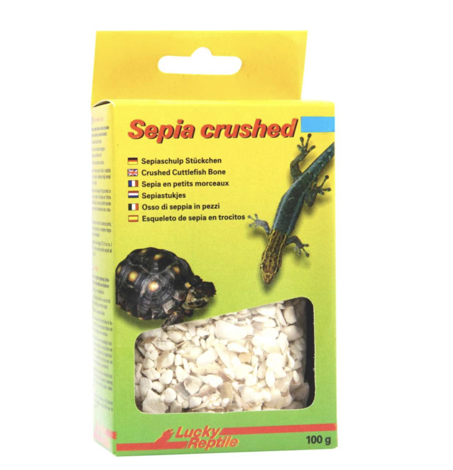 Produktinformationen "Lucky Reptile Bio Calcium Sepia Crushed, 100g" Bio Calcium Sepia Crushed ist zerkleinerter Sepiaschulp. Diese kleinen Sepiastücke sollten immer in einem Napf den Tieren angeboten werden, damit diese aktiv Ihren Mineralienbedarf decken können und Mangelerscheinungen vermieden werden. Generell enthält Sepia ein sehr hochwertiges Calcium und wird deswegen gerne von den Tieren gefressen.