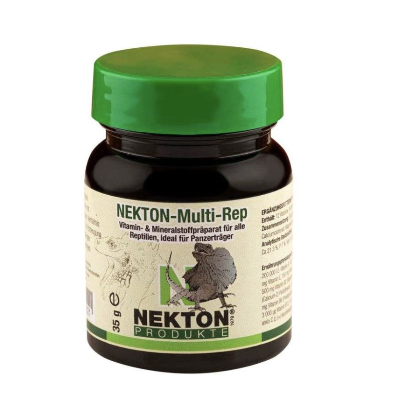 Produktinformationen "Nekton Rep" NEKTON REP ist ein äußerst hochwertiges Vitamin- und Mineraliengemisch, welches durch den hohen Anteil des Epithelschutzvitamins A (Retinol) eine außerordentlich wichtige Funktion bei der Bildung der Körperhaut und der Schleimhäute von Reptilien und Amphibien übernimmt. Es beinhaltet ein hohes Calcium-Angebot und auch Vitamin D3, das die Resorption des Calciums im Organismus der Tiere begünstigt. Vitamine, Mineralstoffe, Spurenelemente sowie die einzelnen Aminosäuren sind so aufeinander abgestimmt. Erhältlich: klein = 35 g
