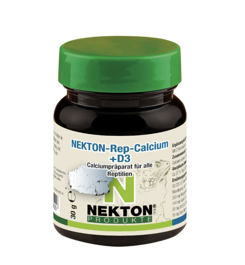 Produktinformationen "NEKTON Rep Calcium + D3 30g" Für den Aufbau und Erhalt des Skeletts bei allen Reptilien und Amphibien ist eine ausreichende Calziumzufuhr notwendig. Mit Nekton Rep-Calcium+D3 wird dies bei regelmäßiger Fütterung hervorragend gewährleistet und ist sowohl vorbeugend als auch bei bereits vorhandenen Mangelerscheinungen anzuwenden. NEKTON-Rep-Calcium+D3 ist angereichert mit Vitamin D3 und zwei Aminosäuren. Es unterstützt den optimalen Ausbau und Erhalt des Skeletts und begünstigt einen gesunden Calciumstoffwechsel bei allen Reptilien. Zur Vorbeugung und zum Ausgleich von Calciummangel und dessen Folgeerkrankungen. NEKTON-Rep-Calcium+D3 kann einfach unter zerkleinertes Futter gemengt werden. Für insektenfressende Reptilien und Amphibien werden die Futtertiere mit NEKTON-Rep-Calcium+D3 bestäubt.