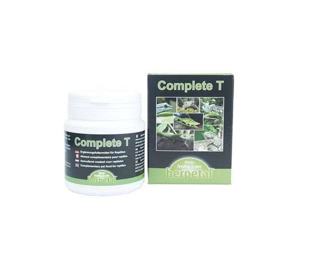 Produktinformationen "Herpetal Complete T" Ergänzungsfutter für Reptilien zur Vermeidung von ernährungsbedingten Mangelerscheinungen wie Rachitits, Appetitlosigkeit, Häutungsproblemen, Sterilität, Apathie, Wachstumsstörungen, Kropfbildung, geringe Stressresistenz. Complete T hat die Vorteile auf die es ankommt von Praktikern speziell für Reptilien entwickelt. optimales Ca:P Verhältnis enthält schon einen hohen Anteil an Kalziumzitrat, so mit ist kein zumischen von Kalzium mehr erforderlich. hohe Bioverfügbarkeit der verwendeten Inhaltsstoffe und somit schnellere Verfügbarkeit und Verwertung durch das Reptil. optimierter Gehalt an Vitamin A hoher Gehalt an Jod leicht in der Anwendung und Dosierbarkeit gut mit anderen Herpetal Produkten kombinierbar