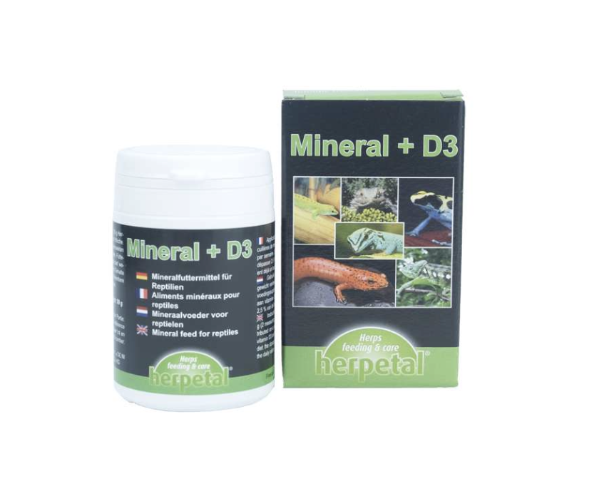Produktinformationen "Herpetal mineral + d3" zum Ausgleich von ernährungsbedingten Mangelerscheinungen an Mineralstoffen, sowie während der Trächtigkeit und in Wachstumsphasen. Die in Herpetal Mineral vorkommenden Mineralstoffe und in ihnen gebundenen Elemente sind für folgende Bereiche im Stoffwechsel von Reptilien unentbehrlich und verantwortlich: für den Aufbau der Körpersubstanz und sichern darüber hinaus viele wichtige physiologische Vorgänge direkte Bausteine des Skelett beeinflussen den Elektrolythaushalt beteiligt am Aufbau wichtiger organischer Verbindungen (z.B. Hämoglobin) ein Mangel an Mineralstoffen, sowie eine ungenügende Resorption kann zu Krankheiten führen (z.B. Rachitis)