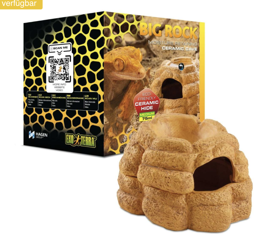 Produktinformationen "Exoterra Big Rock Keramikhöhle" feuchtigkeitsspeichernde Höhle aus Keramik für Reptilien bietet einen sicheren, feuchten Bereich zum Verstecken hilft, Stress zu verhindern und trägt zum Häutungsprozess bei ein feuchtes Mikroklima lässt sich in der Höhle leicht beibehalten bietet einen idealen Ort zur Eiablage reduziert extreme Temperatur- und Luftfeuchtigkeitsschwankungen schafft einen dreidimensionalen Raum die abnehmbare Abdeckung ermöglicht einen einfachen Zugang ideal für Reptilien, Amphibien und Wirbellose natürliches Aussehen; lässt sich in jede Art von Terrarium integrieren