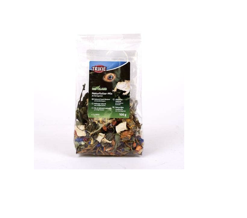 Produktinformationen "Trixie Naturfutter-Mix für Bartagamen, 100g" Mischfuttermittel als Ergänzungsfuttermittel ideale Nahrungsergänzung allesfressende (omnivore) Reptilien die enthaltenen Ballast- und Pflanzenwirkstoffe regen die Verdauung an und unterstützen die Abwehrkräfte Mehlwürmer und Heuschrecken sorgen für die notwendige Proteinversorgung auch für Kleinsäuger geeignet