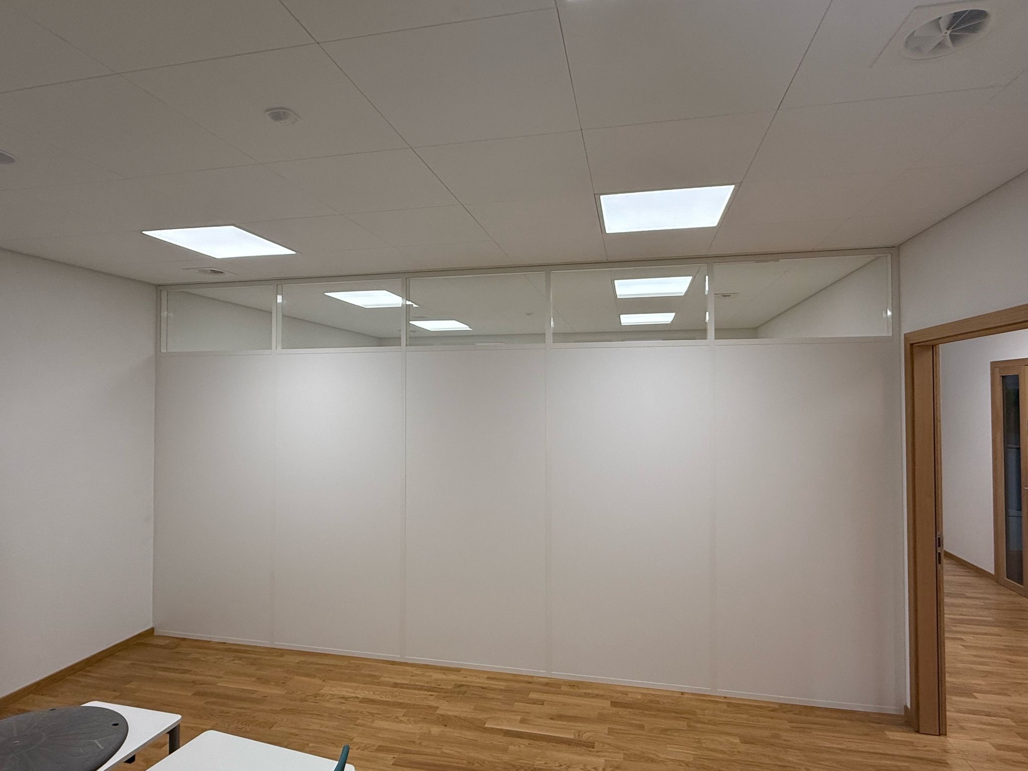 La cloison amovible est un excellent moyen de séparer deux espaces, ici dans une école. Associée à une barrière phonique installée au-dessus de la cloison, dans le faux-plafond, elle garantit une isolation acoustique optimale. Les cloisons amovibles offrent également l’avantage d’une mise en œuvre rapide, tant pour l’installation que pour la dépose.