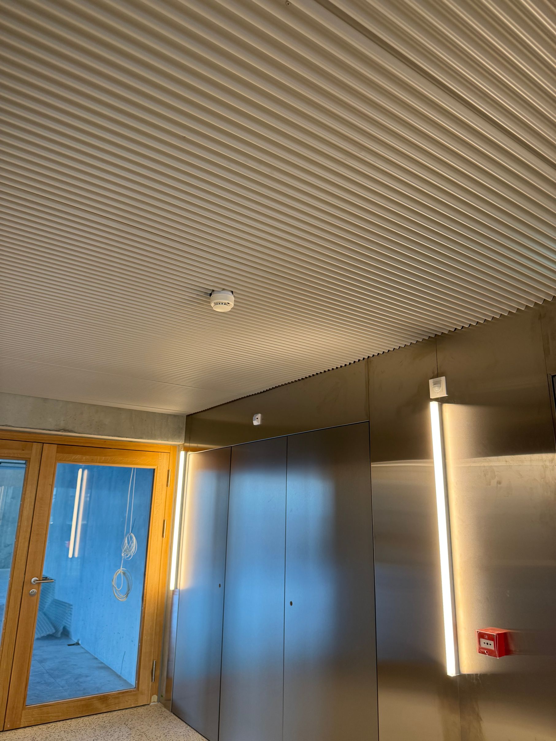 Dans le cadre de cet immeuble de standing à Malley, nous avons réalisé la pose d’un faux-plafond métallique type WellTec, une solution particulièrement adaptée aux espaces de circulation et zones communes. Ce système est apprécié pour son rythme linéaire marqué, offrant un rendu architectural structuré et une lecture continue des volumes. Sa conception garantit également une robustesse élevée et une pérennité optimale dans les environnements à forte fréquentation.