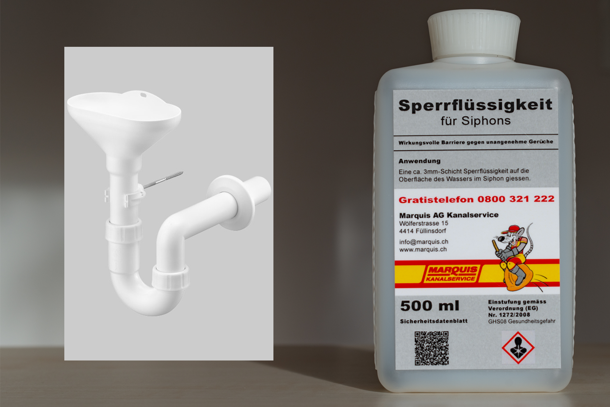 Jeder Sanitäre Einrichtungsgegenstand mit Anschluss an die Schmutzwasserleitung, muss mit einem Geruchsverschluss (Siphon, Bodenablauf, Tropfwassersiphon etc.) ausgestattet sein. Aufgrund seiner Eigenschaften verdunstet das Wasser in Geruchsverschlüssen und wird üblicherweise durch die Benutzung der sanitären Anlagen immer wieder erneuert. Wird die sanitäre Anlage, wie etwa in Kellerräumen, selten oder nicht benutzt, erneuert sich der Sperrwasserstand nicht und somit treten unangenehme Kanalgase (Schwefelwasserstoff-Verbindungen) aus. Als Lösung für die vorstehend genannten Probleme empfehlen wir eine Flüssigkeit, die den Sperrwasserstand für lange Zeit gewährleistet. Somit entstehen keine Beeinträchtigungen durch Kanalgase. Die Handhabung ist einfach gestaltet, Sperrflüssigkeit aus der benutzerfreundlichen 500ml Flasche je nach Bedarf dosiert, direkt in den gewünschten Siphon füllen.