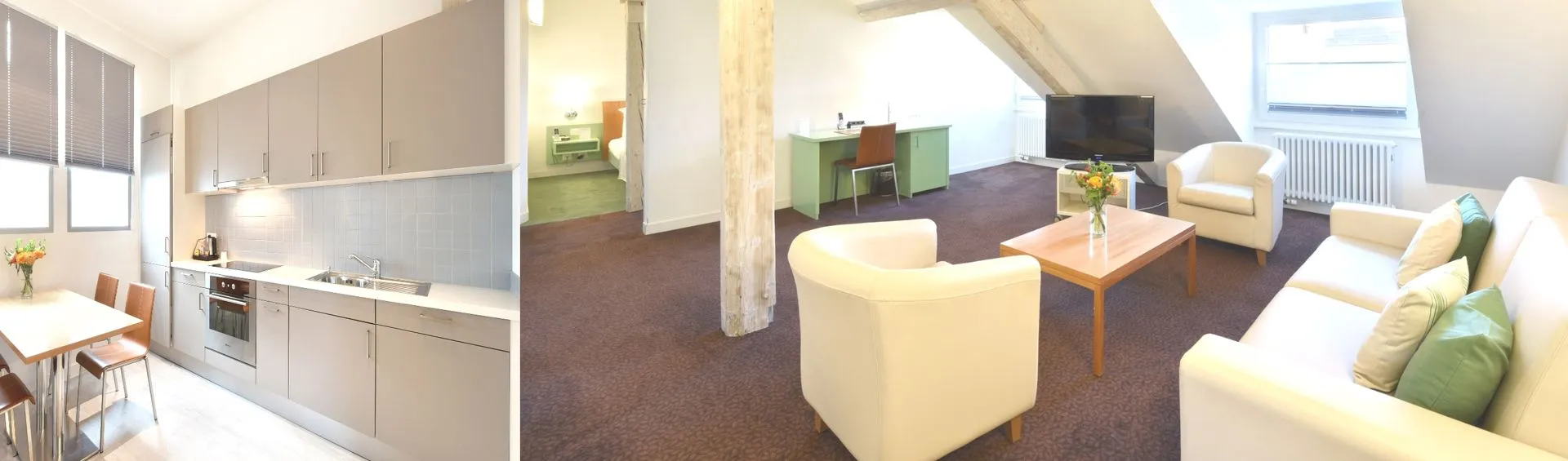 L'appartement privé est conçu pour vous offrir un confort optimal et une très grande indépendance. Equipé d'une cuisine et d'une chambre séparée, l'appartement dispose également d'un salon, d'un minibar et de tous les équipements (wi-fi, téléviseur haute définition) pour que vous sentiez comme à la maison. Réservation sur demande uniquement COMPOSITION DE L'APPARTEMENT - cuisine - chambre séparée grand lit (160X200) - salon avec un canapé lit (160X200) Contact CARACTERISTIQUES DE L'APPARTEMENT - espace bureau - minibar - télévision haute définition - salle de bains avec baignoire et douche à l'italienne PRESTATIONS - sèche-cheveux - peignoir - coffre-fort - connexion WIFI gratuite - plateau de courtoisie café-thé en chambre Nous mettons à votre disposition un service soigné 24h sur 24 et vous conseillons tout au long de votre séjour.