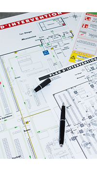 - Plans d’évacuation : destinés à informer le personnel et les visiteurs sur le principe d’évacuation et la conduite à tenir en cas de sinistre. - Plans d’intervention : indiquent aux services de secours les informations nécessaires pour faciliter leur intervention. Ils peuvent être complétés par un registre d’intervention. - Autres plans : plan de circulation, etc. L'ensemble des plans (d'évacuation et d'intervention) répondent à une norme : NF X08-070. Les différents supports : - PVC avec film contre l'abrasion classé M1 avec encre écologique. Les nouvelles générations d'encres à base d'eau permettent une approche plus saine de l'impression avec des avantages pour l'environnement mais aussi une grande polyvalence et résistance en extérieur. - ENCAPSULAGE à chaud mat 5/10ème et 10/10ème. - DIBOND® est constitué de deux tôles aluminium de 0,3mm chacune recouverte d’un laquage polyester de haute résistance et d’un noyau en polyéthylène. La matière résiste aux intempéries et aux UV. - PLEXIGLASS Thermoplastique transparent, léger et lumineux. Il résiste à la corrosion, aux agents atmosphériques et aux UV. - ECOPAN Plaque rigide et lisse composée d'un PVC expansé classé M1. - VERRE : Matière noble par excellence limpide, brillant et trés lumineux. - ZINC : Plan encapsulé à chaud mat 10/10ème et contrecollé sur une tôle galvanisée. - ENCRES : toutes nos encres sont résistantes aux UV. Les finitions : - Cadres avec fond isorel : Aluminium Brossé, Blanc, Noir, Bleu, Vert, Rouge, Jaune, Or, Bronze et Champagne. - Clic-clac aluminium.