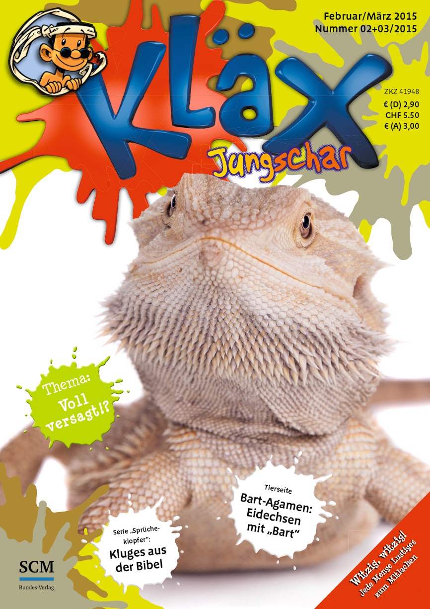Mit hohem Spassfaktor regt KLÄX Kinder an zum Weiterfragen und Kreativsein.Das alles steckt in KLÄX: Bibelgeschichten und -quizspiele, Glaubensbasics, Comics, Rätsel, Wissens- und Lebensthemen, Poster, Juniorreportagen, Tierinfos, Spiel- und Basteltipps und mehr. Ideal für Kids im Grundschulalter – denn mit KLÄX macht Lesen(lernen) richtig Spass. KLÄX kennenlernen oder abonnieren.