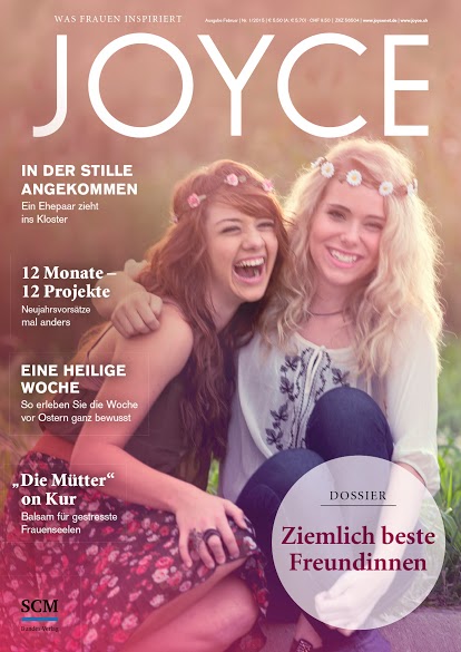 JOYCE ist das Magazin für Frauen … … die wissen, wie wichtig es ist, sich selbst eine Oase im chaotischen Alltag zu gönnen. … die überzeugt davon sind, dass Humor, Leichtigkeit und Tiefgang kein Widerspruch sind. … die inspiriert werden möchten, wie man den Herausforderungen des Alltags mit Gelassenheit und Gottvertrauen begegnen kann. JOYCE kennenlernen oder abonnieren.