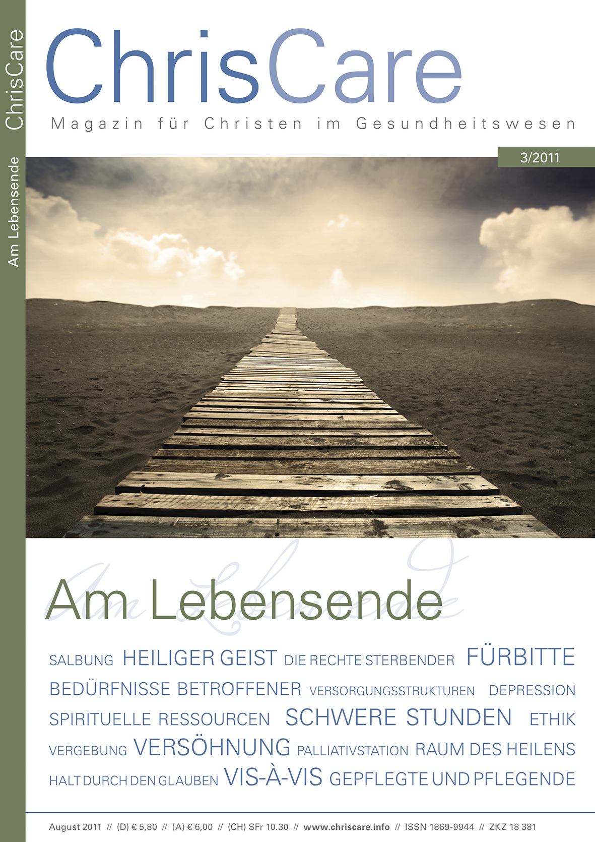 ChrisCare ist ein konfessionsverbindendes Magazin für alle Berufe des Gesundheitswesens. Die Zeitschrift ermutigt Mitarbeiter im Gesundheitswesen, ihre Berufung neu zu entdecken und zu entfalten. Sie trägt dazu bei, die Bedeutung des christlichen Glaubens für Medizin, Pflege und Therapie zu erkennen und in die fachliche Diskussion einzubringen. Erscheint 4 mal im Jahr. ChrisCare kennenlernen oder abonnieren.