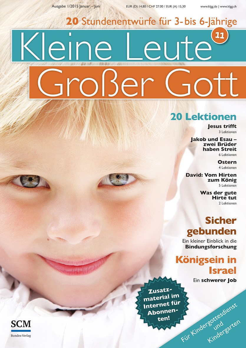 "Kleine Leute – Grosser Gott" enthält 20 ausgearbeitete Lektionen auf das Alter zwischen 3 und 6 Jahren ausgerichtet. Jede Menge Spiele, Basteltipps, Gesprächsanregungen und Aktionsvorschläge helfen, die Aussagen der Bibelgeschichten zu vertiefen. Als Extra gibt es für Abonnenten umfangreiches Zusatzmaterial im Internet. Vervollständigt wird die Zeitschrift durch motivierende, informative und schulende Artikel. "Kleine Leute - Grosser Gott" kennenlernen oder abonnieren.