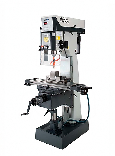 SERRMAC HT TCS VS Beschreibung: TCS - VS mit Variator, Mk 4, 2-tourig VS-TR mit Rechtecktisch schwenkbar 800 x 360 mm VS-TC mit Kreuztisch schwenkbar 800 x 255 mm alle Modelle mit Ausrüstung: - Handradvorschub und Feinzustellung - automatisch-mechanischer Spindelvorschub - Kühlmitteleinrichtung komplett HT TCS VS Hersteller: SERRMAC / HT TCS VS Bohrleistung: 50 mm Tischgrösse: 800x255 mm Spindelkonus: MK 4 Pinolen Ø: 72 mm Max. Einbauhöhe Tisch-Bohrpinole: 690-860 mm Drehzahlen: 100-1620 U/Min. Antrieb: Variator Motorleistung: 2.2-3 KW Gewicht ca.: 800 kg Abmessungen: 1380x557-1340-1380 / 1982 mm Automatische Vorschübe: 3 Geschwindigkeiten 0.05 - 0.1 - 0.2 36 Monate Werksgarantie