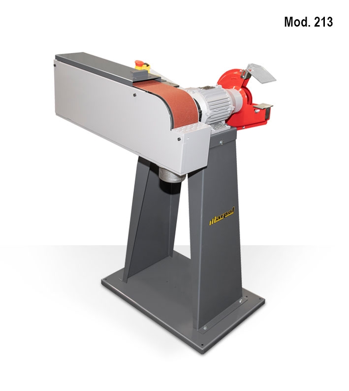Schleifmaschine MARPOL 123 Hersteller: MARPOL Schleifmaschine mit Schleifscheibe und Schleifband Schleifscheiben-Ø: 200 mm, Schleifbandlänge 120 x 1500 mm Motorleistung 0,6 / 0,8 KW, Drehzahl: 1400/2800 U/Min. Arm mit Schleifband schwenkbar