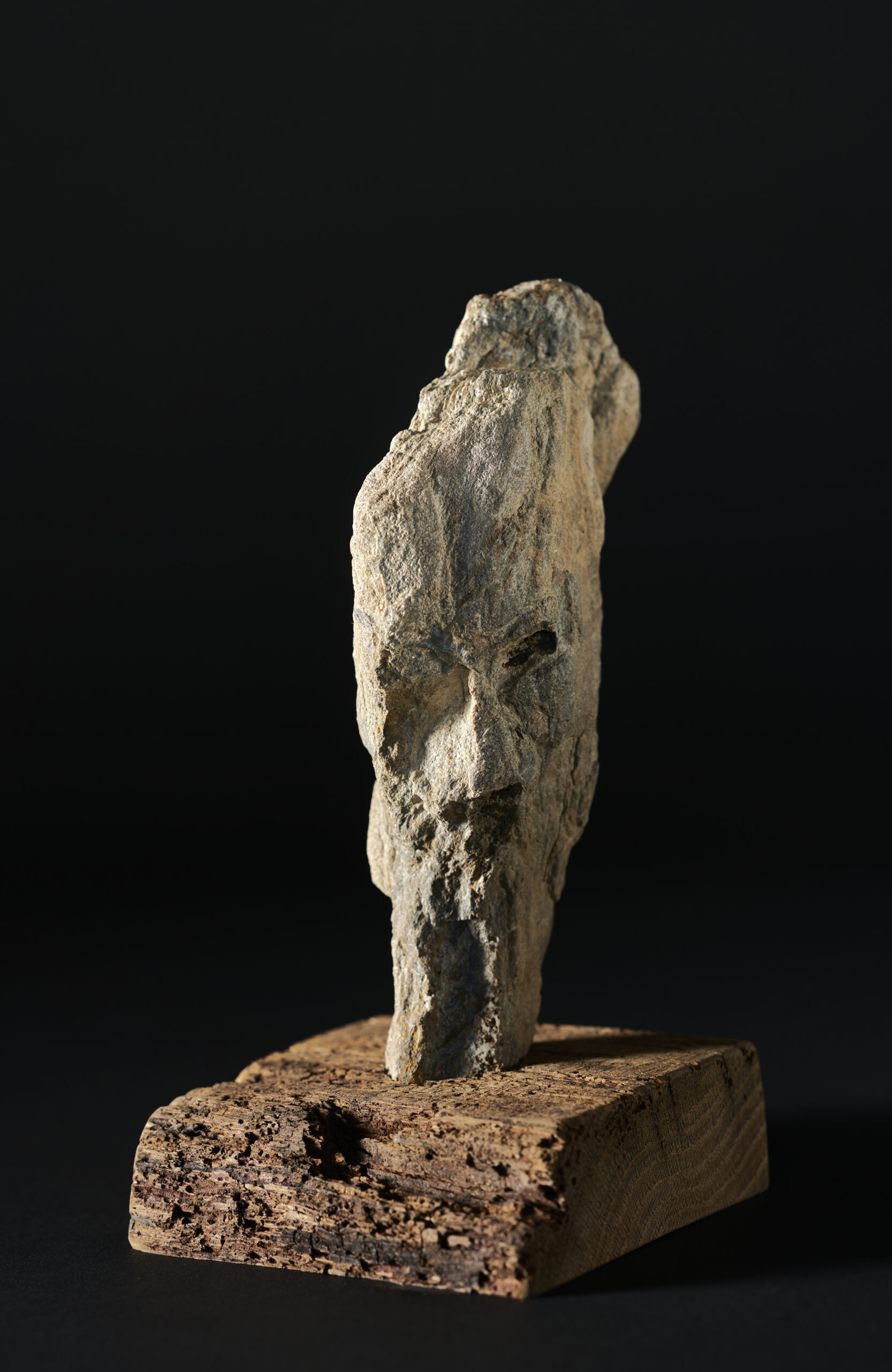 Stein, wo der Steingeist zuhause ist. Bei der Wanderung Somtgant zur Alp Foppa hat mich der Steingeist aus den vielen Steinen angelächelt und zugezwinkert. Mir war sofort klar, dass dies eine Skulptur wird. Der Steingeist ist schon im gesetzteren Alter und hat schon viel erlebt und gesehen. Der Steingeist steht auf einem Sockel aus Altholz Eiche Fundort: oberhalb Alp Foppa Savognin-Surses Gesamthöhe 18.5 cm Sockel 9.2 x 9.2 x 3 cm