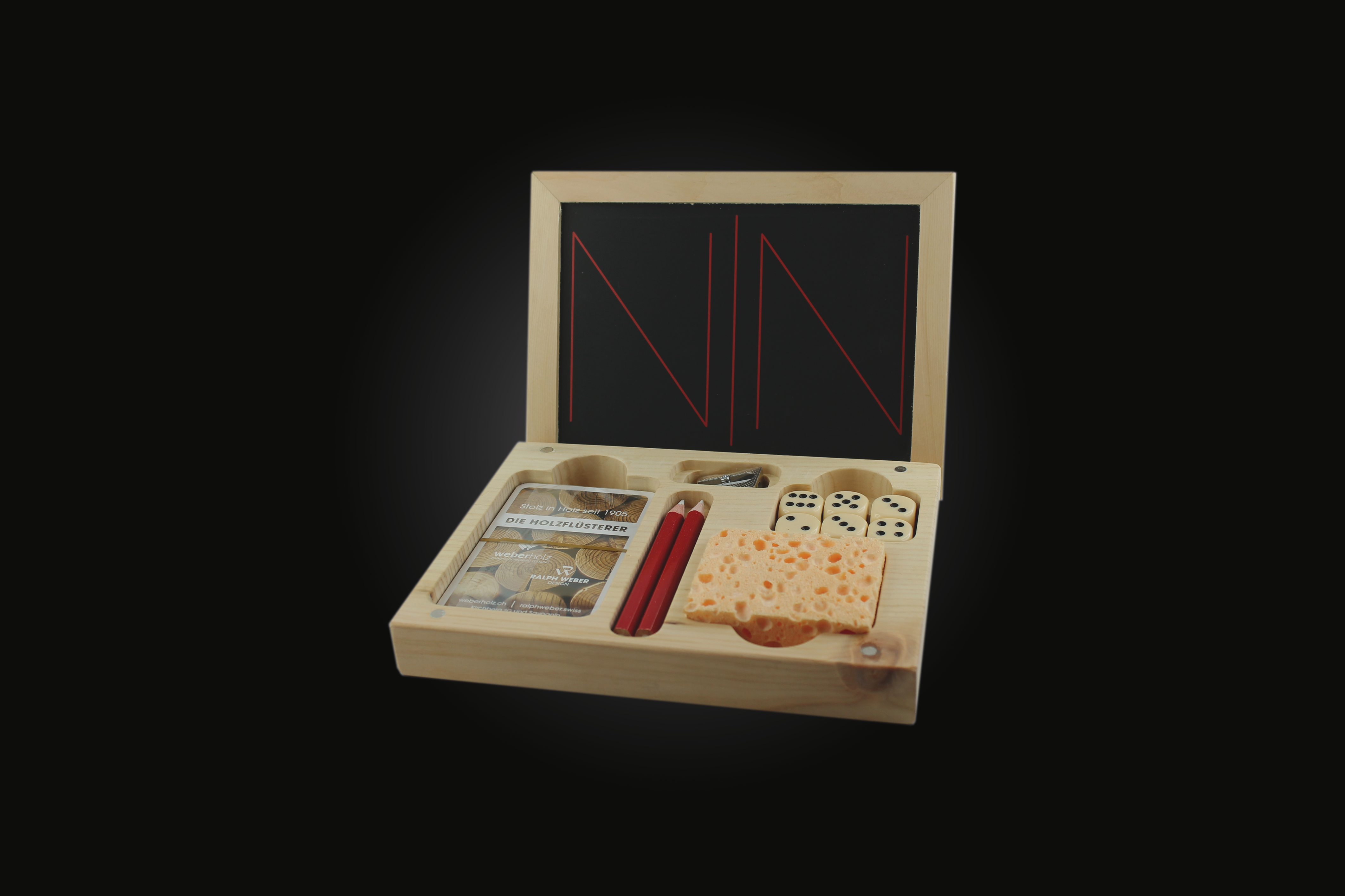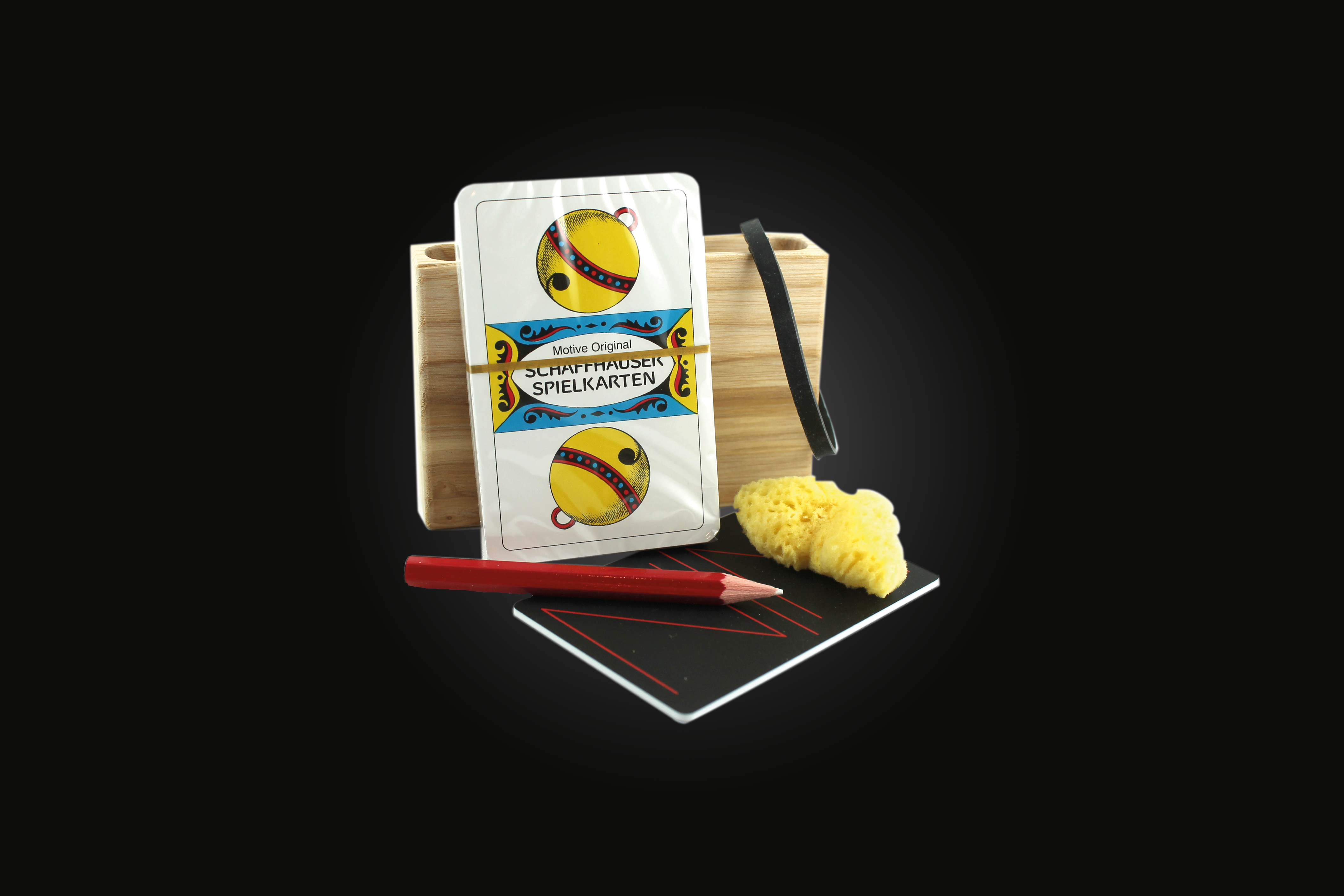 Dieses Jass-Set ist immer mit dabei! Ideal zum Mitnehmen auf Reisen, für Ausflüge zu Freunden oder einfach für Zuhause. Es braucht kaum Platz. Besonders geeignet als Geschenk für Freunde oder auch für die treue Kundschaft. Vom «Tschau Sepp» bis hin zum «Coiffeur», dem Jass-Spass sind keine Grenzen gesetzt. Das Jass-Set enthält: 1 Set Jasskarten (deutsche Spielkarten), 1 Schwämmli, 1 Stift, das Ganze wird mit einem schwarzen Gummiband in der Holzbox fixiert. Erhältlich in den Holzarten: Arve, Eiche, Esche, Kirschbaum, Lärche, Nussbaum Grösse L x B x H: 10.4 x 2.3 x 7 cm Besonderheit: Auf Wunsch können wir ein Laser-Branding auf der Holzhülle anbringen. Kontaktieren Sie uns, wir zeigen Ihnen die Möglichkeiten.