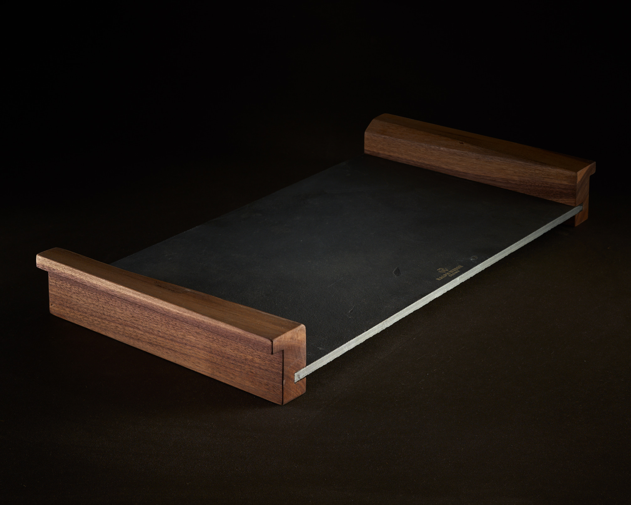 Schieferplatte beidseitig in Holzgriff eingenutet/geleimt. Griff Massivholz. In verschiedenen Holzarten (Buche, Nussbaum, Lärche, Eiche) erhältlich. Schiefer in Farbe grünlich und schwarz erhältlich. Schieferdicke 1 cm. Ideal zum Servieren und Anrichten von Käse, Fleisch, Apéroplättli etc. Länge ca. 66 cm, Breite ca. 30 cm, Höhe ca. 6.5 cm