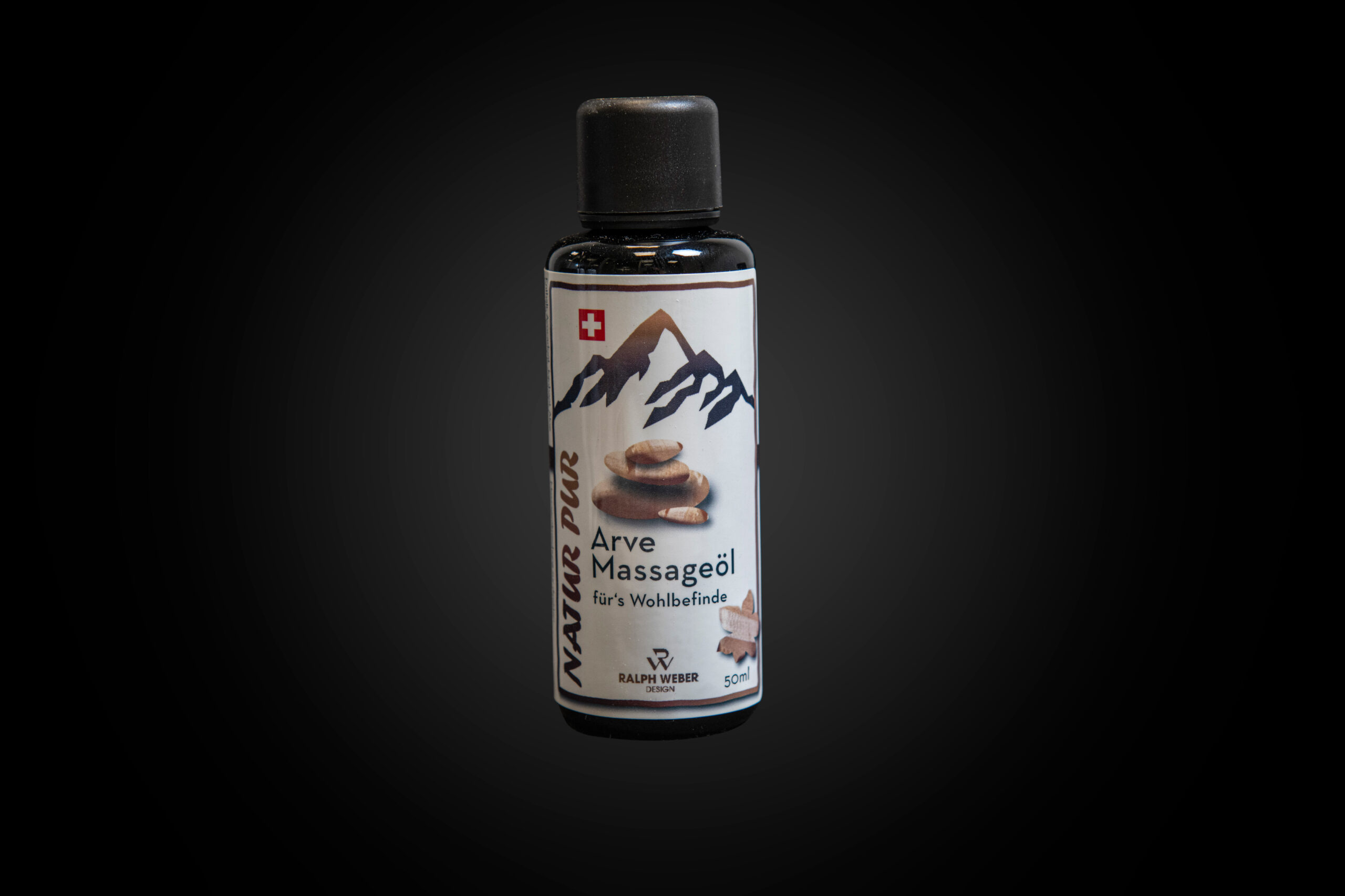 Arve Massageöl “für’s Wohlbefinde” Glasflasche 50 ml mit Avocadoöl, Jojobaöl, Aloe Vera Öl, Arvenöl, Rosenholzöl, Rosengeraniumöl, Orangenblütenöl Dieses anwendungsfertige Massageöl können Sie direkt auf die zu massierende Hautstelle geben. Geniessen Sie die Massage und den angenehm, feinen Duft, während die hochwertigen Öle Ihre Haut pflegen. Ideal zum relaxen, entspannen und auch geeignet, um das Einschlafen zu fördern. Hinweis: Augenkontakt vermeiden, nicht auf Schleimhäute auftragen.