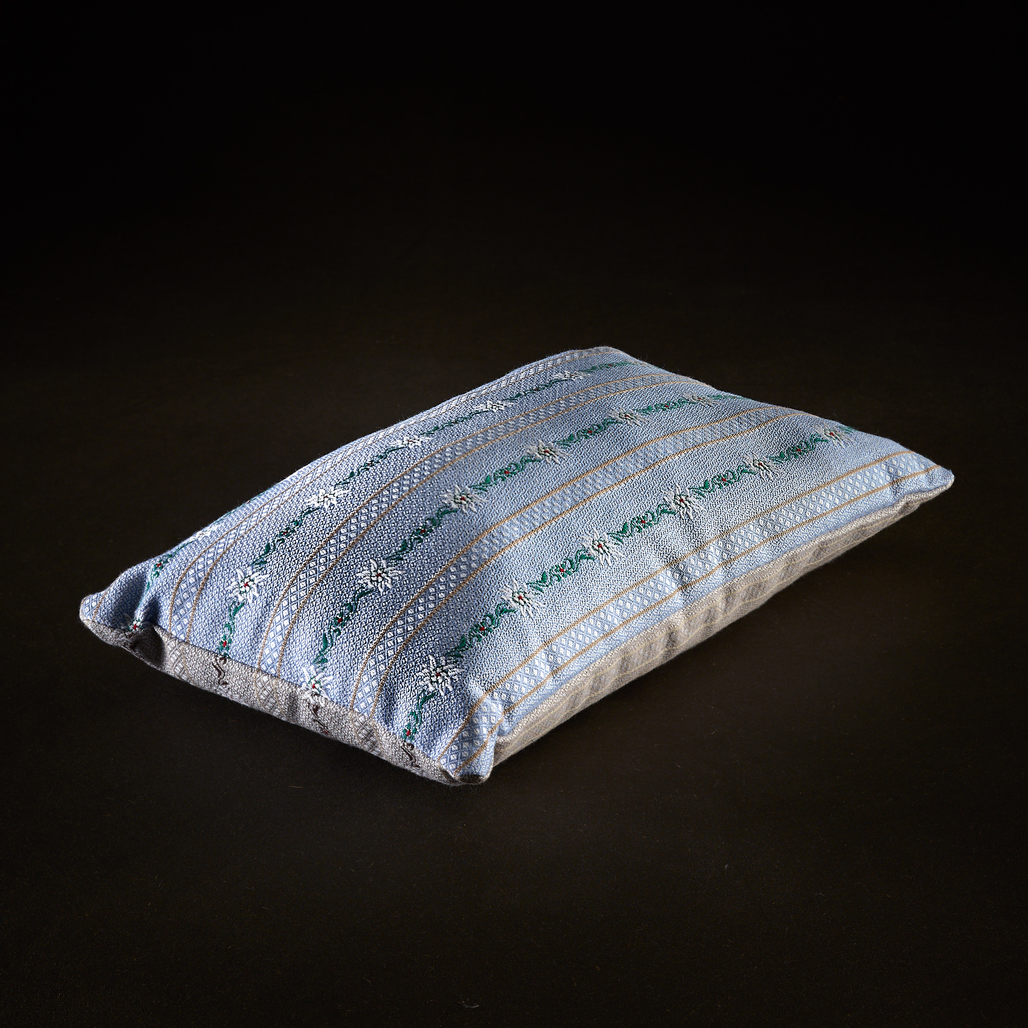 Arvenkissen “Edelwiis”, Hülle mit Edelwiissstoff und Reissverschluss, gefüllt mit Bündner/Engadiner Arve. Kissen im Toggenburg von Sara genäht. Hülle mit Edelwiisstoff erhältlich in den Farben Blau, Grau, Rosa. Arve beruhigt den Puls und verleiht einen erholsamen Schlaf. Arvenholz bewirkt eine niedrigere Herzfrequenzrate. In Ruhephasen wird der Erholungsprozess signifikant beschleunigt. Was heisst das praktisch? Sie schlafen besser und brauchen weniger Schlaf!