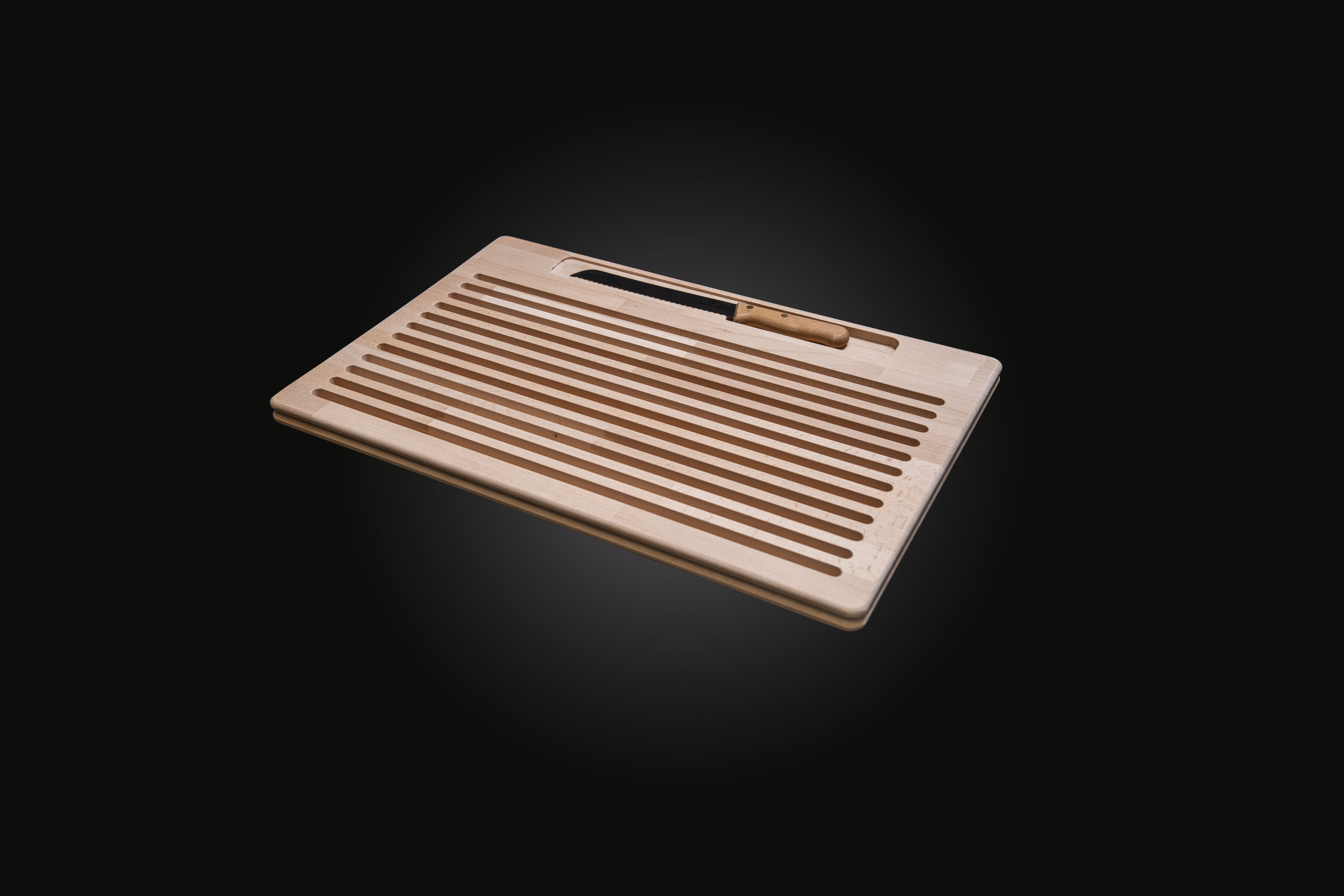 Brotbrett “Brosmen” Brotbrett mit Brösmelibrett 1-teilig aus Massivholz natur (Buche oder Eiche). Nie wieder Brotbrösmeli auf der Arbeitsfläche. Das praktische Brotbrett verschluckt alle Brosmen während dem Schneiden. Schlitzfräsungen gerade. Allseitig Rundung zum gut Halten/Tragen Messerhalterung mit 2 Magneten. Messer bis 39 cm Länge möglich Brotbrett ist nicht spülmaschinen geeignet. (ohne Messer) Ideal für Gastro/Hotel/Restaurant Grösse L x B x H: 60 x 40 x 2.4 cm