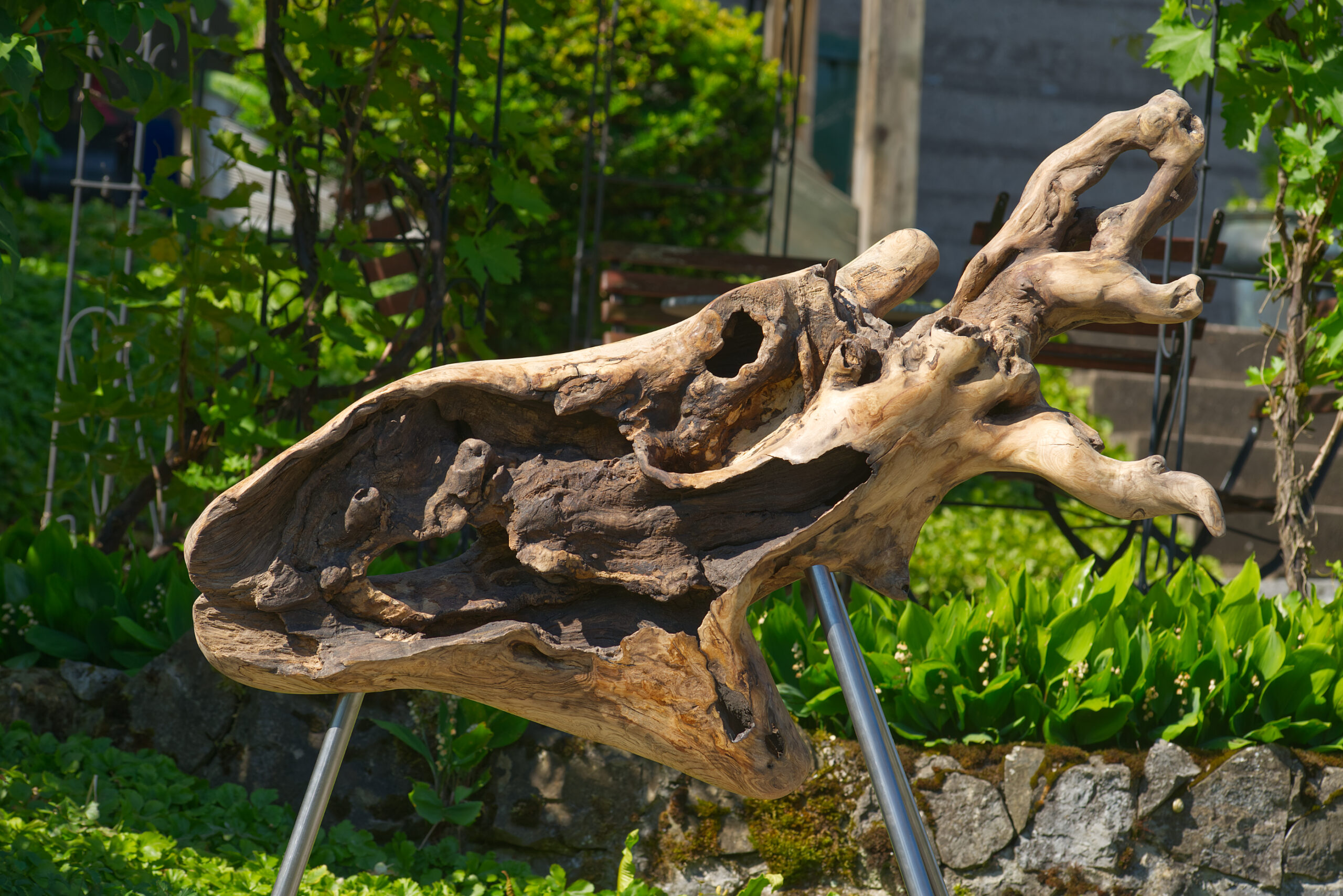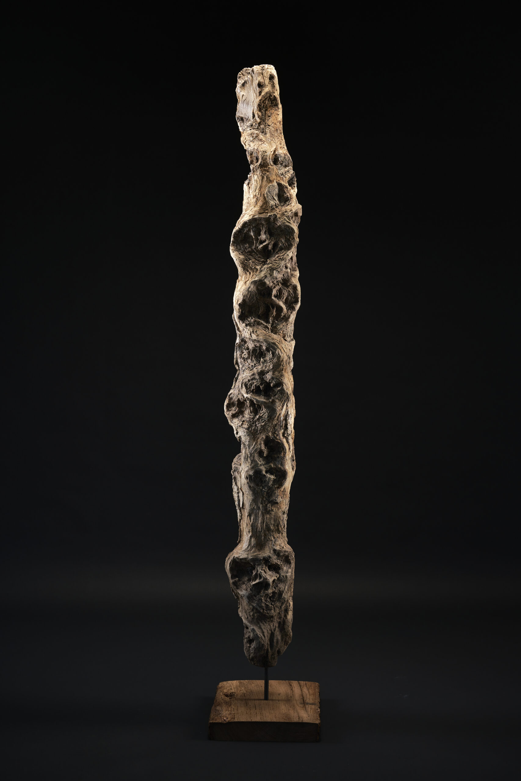 Holzstück gefunden in der Thur bei Niederbüren. Beim Spazieren mit meiner Frau Carmen und Tochter Selina habe ich das spezielle Holzstück am Ufer der Thur entdeckt. Das gesunde Holz wurde geputzt und naturbelassen. In etwa so stelle ich mir die Erde aus Sicht des Mondes vor. Der Sockel ist Altholz in Eiche Fundort: in der Thur bei Niederbüren SG Höhe Skulptur ca. 167 cm Tiefe Skulptur ca. 18 cm Breite Skulptur ca. 18 cm Sockel 30 x 30 x 5.5 cm Gesamthöhe 180 cm