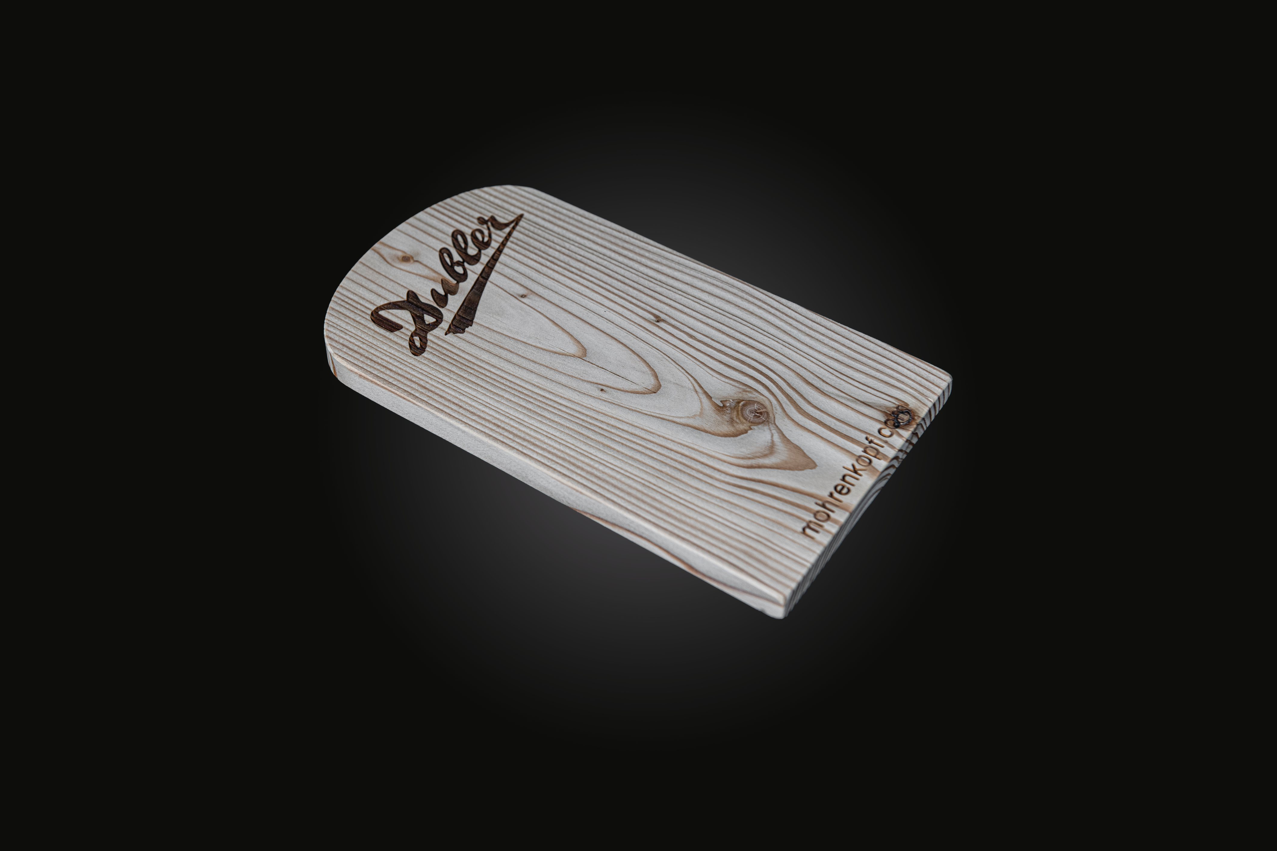 Mohrenkopfbrett Original-Dubler Brett mit Rundung (Mohrenkopfform) Platz für 4 Mohrenköpfe, ideal als Geschenk Holz: Bündner Lärche / Laser-Branding: Dubler-Logo Grösse L x B x H: 25 x 14 x 1.4 cm