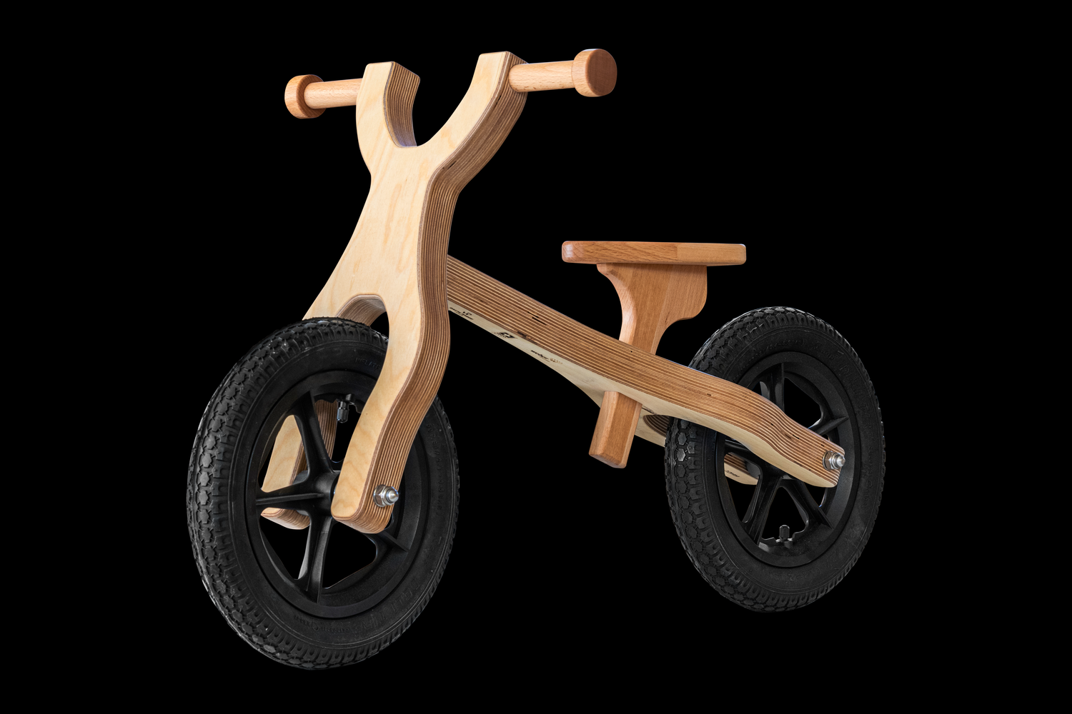 Sitz und Lenker in Buche Stabile Konstruktion aus Birkensperrholz und Buche, geölt mit Hartöl Stabile Pneu luftbereift mit Ventil/Schlauch Sitz in der Höhe stufenlos verstellbar Wartungsfreie Radlager, Eisenteile alles rostfrei Inox für Kinder ab 2-6 Jahren geeignet Grösse L x B x H: 90 x 40 x 60 cm