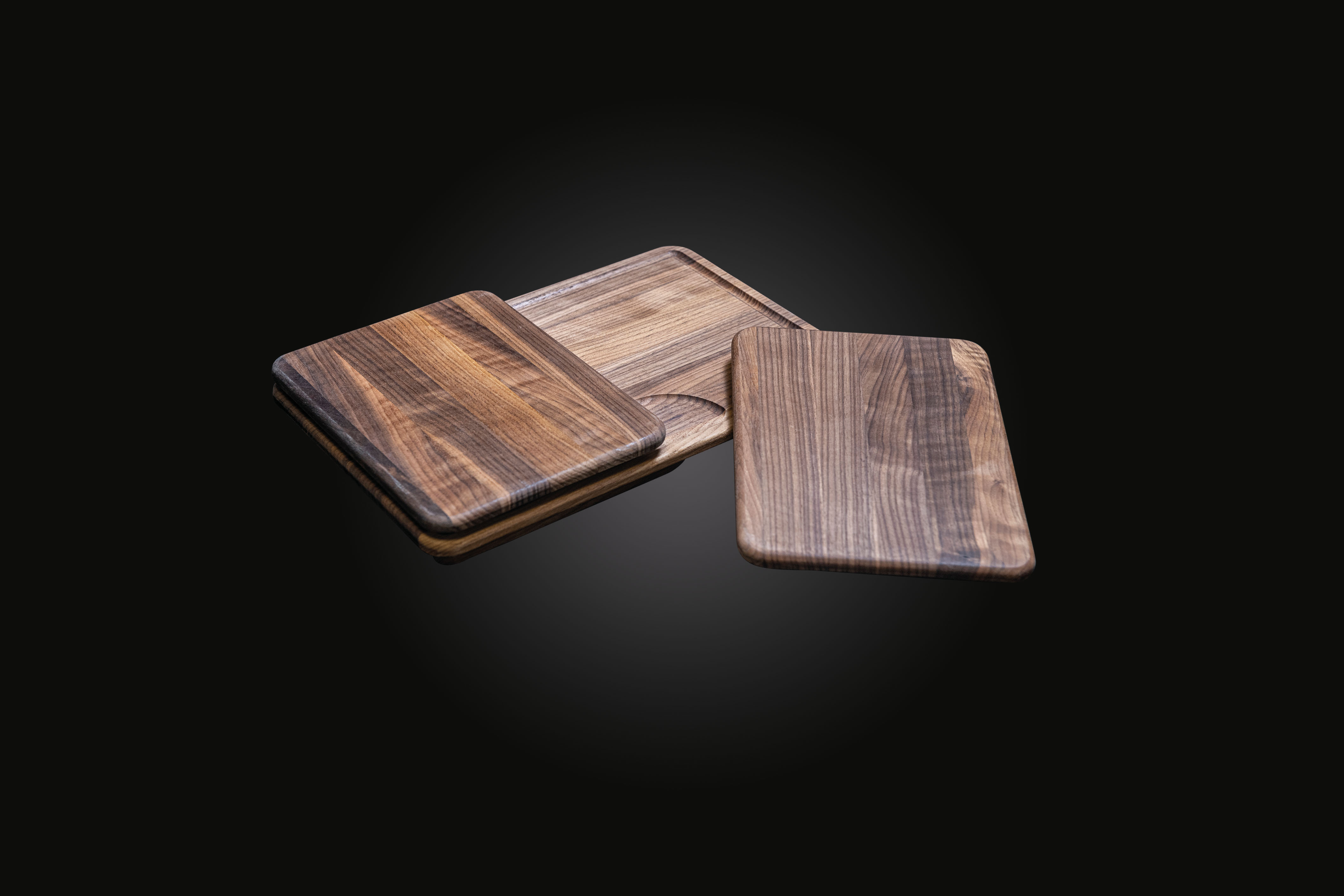 Chuuchi-Grillbrett XL-Andy, 3-teilig aus Eiche, Buche, Nussbaum oder Olive, massiv natur. 1 Stück unteres Brett mit umlaufender Saftrille und Saftauffang, allseitig umlaufende Griffrundung zum gut Tragen/Halten Grösse unteres Brett: 36 x 24 x 2.6 cm 2 Stück obere Bretter, allseitig umlaufende Griffrundung zum gut Tragen/Halten, 4 Füssli passend in Saftrille vom unteren Brett Grösse obere Brettli: 24 x 18 cm Chuuchi-Grillbrett ist nicht spülmaschinen geeignet. Bretter geölt mit Complex-Hartöl