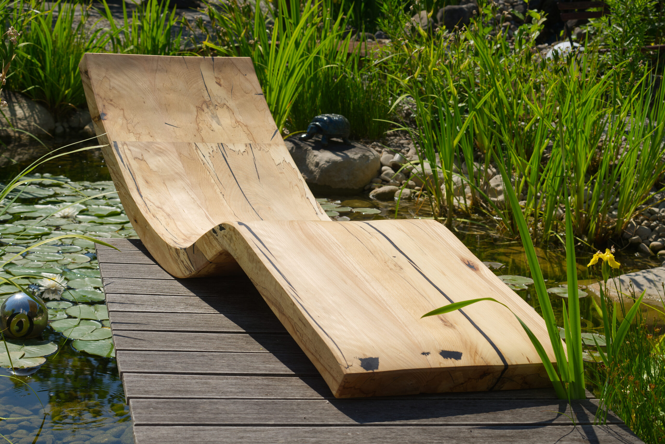 Liege “Schwungi” aus Dietschwiler Buche massiv. Buche ist verstickt und hat dadurch eine spezielle Farbe/Maserung erhalten. Die Liege hat eine geschwungene Form, deshalb der Name “Schwungi”. Oberflächen geölt. Ideal zum Relaxen und entspannen und ein Blickfang in Ihrem Zuhause. Stärke 8 cm / Breite 55 cm / Höhe 49 cm / Länge 202 cm