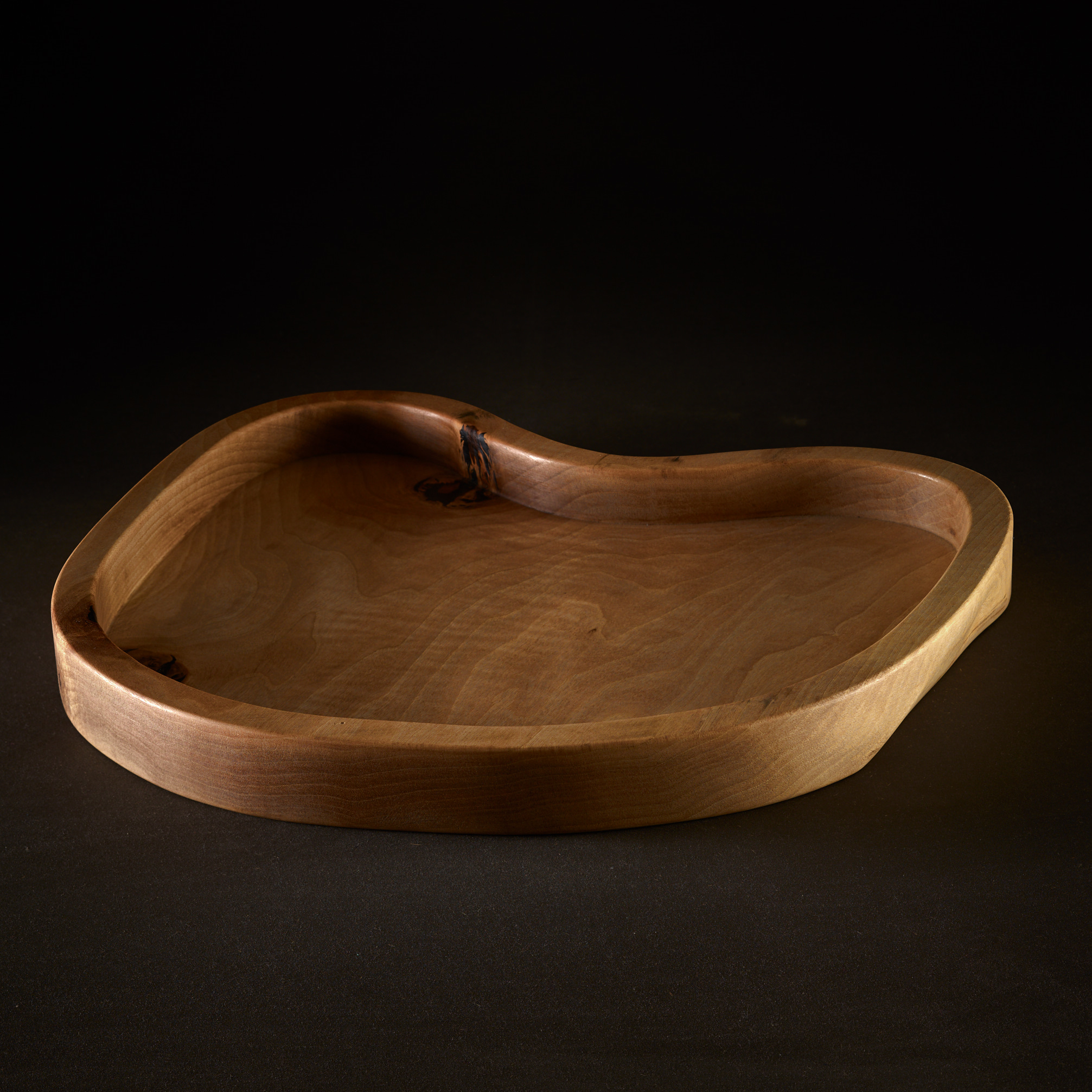 Genussbrett “Niera”, Brett aus Nussbaum vom Toggenburg, nierenförmig, ausgefräst, Zum Servieren oder als “Schnapsbar”. Unikat. Grösse L x B x H: 42 x 40 x 4.2 cm