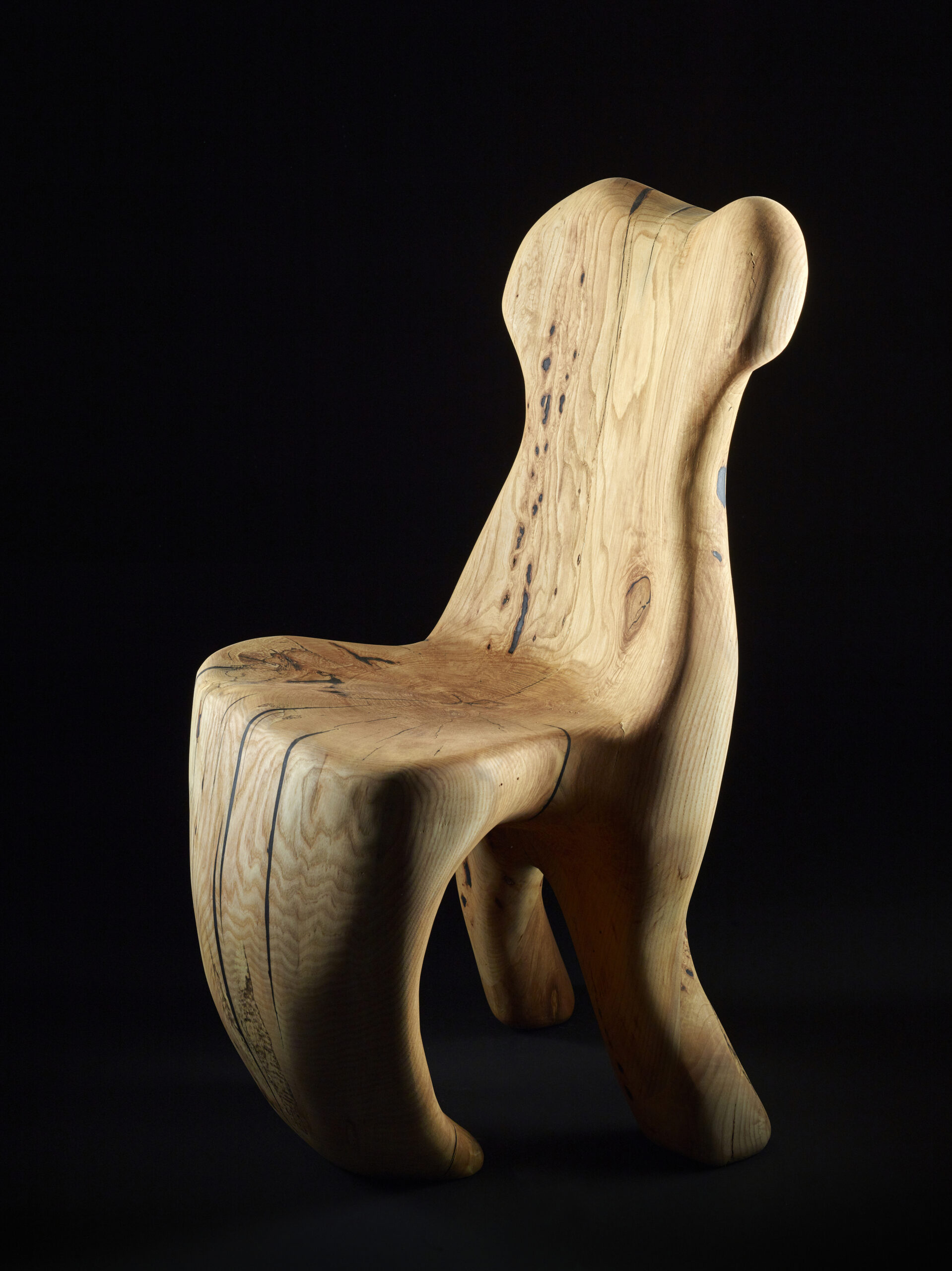 Stuhl “Rundi” aus massivem Eschenklotz vom Dietschwiler-Wald. Es ist alles rund, deshalb der Name “Rundi”. Mit der Motorsäge, Schleifscheibe und viel Handarbeit wurde der Stuhl hergestellt. Stuhl ist geölt Tiefe 60 cm / Breite 48 cm / Sitzhöhe 48 cm Gesamthöhe 100 cm
