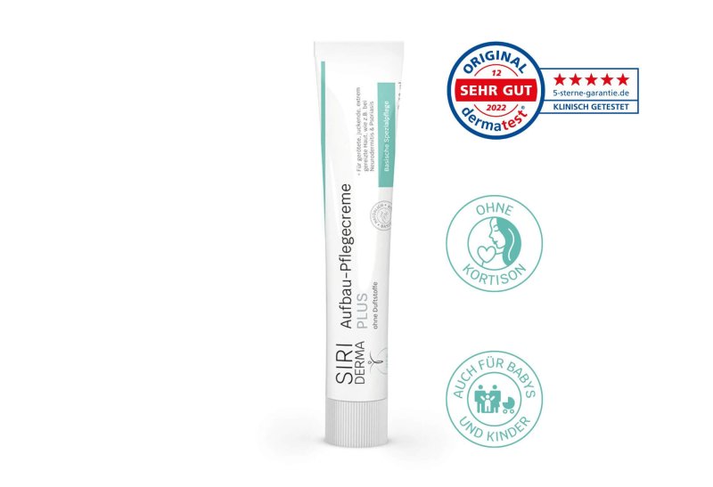 Durch den hohen Anteil an Nährstoffen und Mineralien beruhigt die hochverträgliche SIRIDERMA Aufbau-Pflegecreme PLUS die gereizte, gerötete und juckende Haut und lindert Juckreiz und Brennen. Zusätzlich wird die Haut intensiv mit Feuchtigkeit versorgt. Rötungen und Reizungen, wie zum Beispiel bei Neurodermitis, Psoriasis und Rosacea, lassen sich durch die Anwendung der Aufbau-Pflegecreme PLUS deutlich reduzieren und der Hautzustand spürbar verbessern.