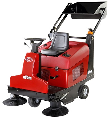 Bei der ATOM Plus-Baureihe handelt es sich um ein Sortiment von Kehrsaugmaschinen mit manueller Entleerung (Atom Plus) oder hydraulischer Hochentleerung (Atom SA). Sie wurden für all diejenigen entwickelt, die mehr von einer kompakten Aufsitzkehrmaschine erwarten. Höhere Filterleistung für den Einsatz in sehr staubigen Umgebungen. Größerer Kehrgutbehälter zur Erhöhung der Flächenleistung/Stunde. Gesteigerter Komfort für ermüdungsfreies Entleeren des Kehrgutbehälters (Atom SA). Robustere Bauweise für eine lange Lebensdauer. RCM Atom ESA, Kehrsaugmaschine mit Hochentleerung Kehrbreite: 1 oder 2 Seitenbesen 950, bzw. 1250 mm Kehrbreite ohne Seitenbesen: ca. 750 mm Fahrantrieb: Elektrisch stufenlos Kehrgutbehälter: 95 Liter Flächenleistung: 6875 qm/h Filterrüttler: elektrisch Filtersystem: Filterpatronen, optional Polyesterfilter Wartungsfreie Batterie und integriertes Ladegerät inkl.