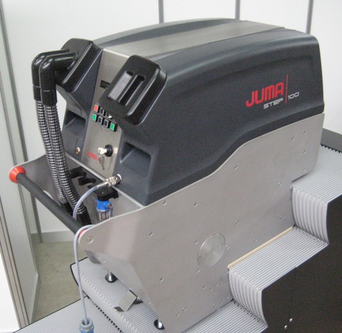 UMA Rolltreppenreinigungsmaschine STEP 110 / 150* Reinigung von Trittflächen und Stirnseiten in einem Arbeitsgang. *STEP 150 mit Display - Bedienung Arbeitsbreite ca. 520 mm Anzahl Bürsten, 18+1 Tritthöhe verstellbar Wassertanks 2 x 20 Liter Bürstensatz und Transportwagen inkl. Die UMA Rolltreppenreinigungsmaschine STEP 110 / 150 ist ein spezialisiertes Gerät zur effektiven Reinigung von Rolltreppen. Sie ermöglicht die gleichzeitige Reinigung der Trittflächen und Stirnseiten in einem einzigen Arbeitsgang, was die Effizienz und Zeitersparnis bei der Reinigung erhöht. Technische Details: Arbeitsbreite: Ca. 520 mm, was eine breite Abdeckung bei der Reinigung ermöglicht. Anzahl der Bürsten: 18+1, was für eine gründliche Reinigung sorgt. Tritthöhe: Verstellbar, um sich an verschiedene Rolltreppenmodelle anzupassen. Wassertanks: Zwei Tanks mit jeweils 20 Litern, die eine ausreichende Wasserversorgung während des Reinigungsprozesses gewährleisten. Zubehör: Ein Bürstensatz und ein Transportwagen sind im Lieferumfang enthalten, was die Handhabung und den Transport der Maschine erleichtert. Die STEP 150-Version ist zusätzlich mit einem Display ausgestattet, das die Bedienung vereinfacht und eine bessere Kontrolle über den Reinigungsprozess ermöglicht. Diese Maschine ist ideal für den Einsatz in Einkaufszentren, Flughäfen und anderen öffentlichen Einrichtungen, wo Rolltreppen häufig genutzt werden und eine regelmäßige Reinigung erforderlich ist.