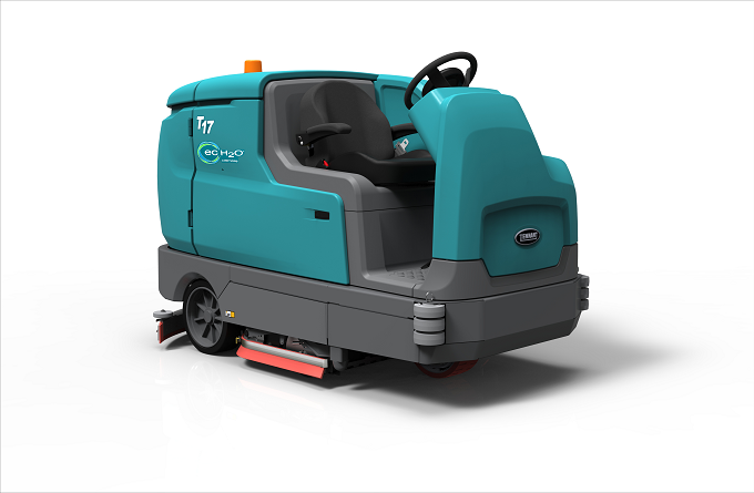 TENNANT Scheuersaugmaschine T17 Arbeitsbreite Tellerbürsten 1000mm Arbeitsbreite Walzenbürsten 1000mm Mit Scheuer- oder Seitenbesen: 1320mm Arbeitsbreite Kehreinheit: 1254mm Frischwassertank 285 Liter Schmutzwassertank 346 Liter mit ES-System: 435 Liter Anpressdruck bis 250 kg variabel Radantrieb vor- u. rückwärts, Steigfähigkeit bis 21% Flächenleistung bis 12500 qm/h